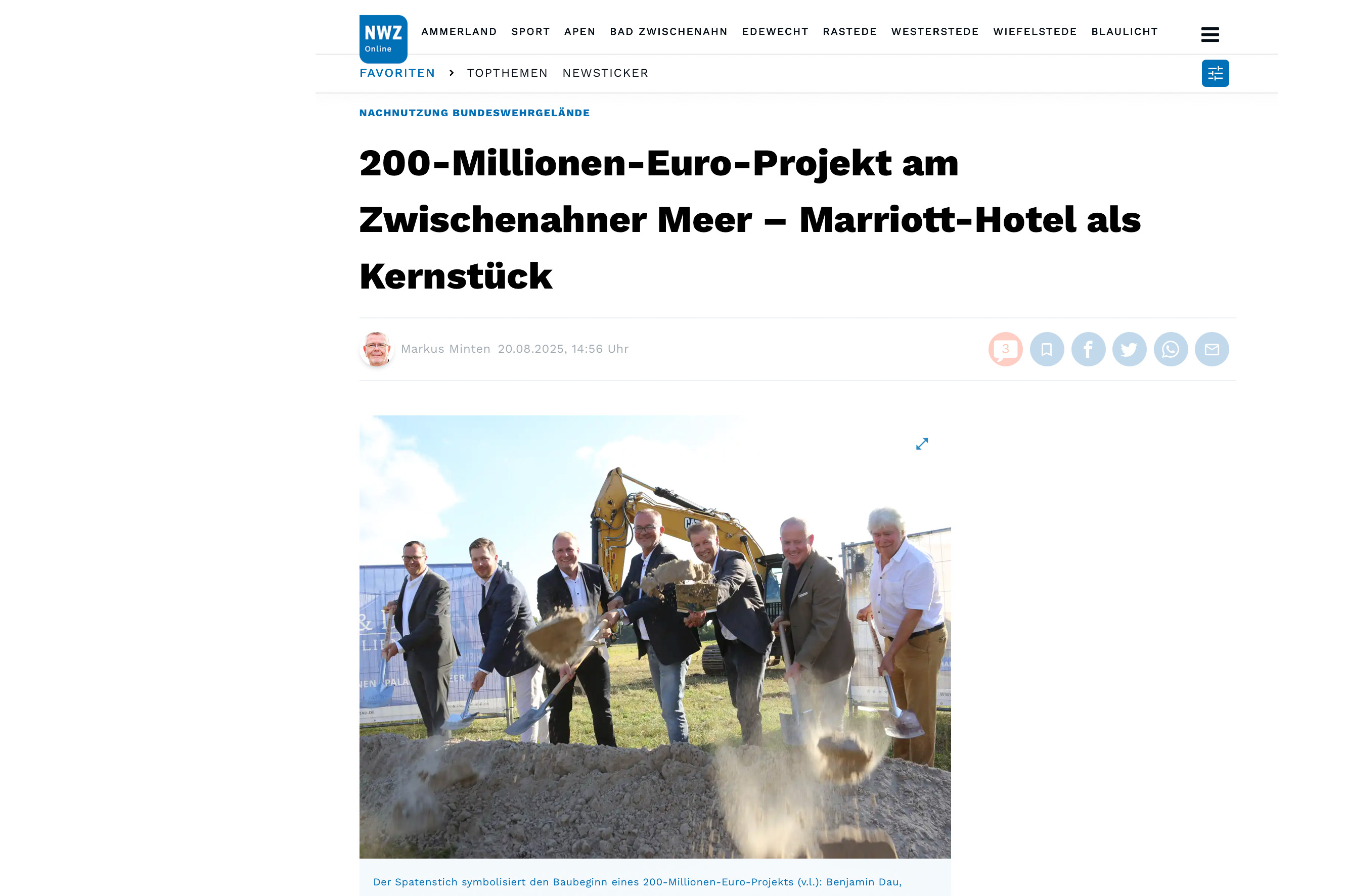 Auf dem ehemaligen Bundeswehrgelände in Bad Zwischenahn entsteht ein Marriott-Hotel mit 260 Betten. Das ist aber nur ein Teil eines 200-Millionen-Euro-Projektes, das die Gemeinde weiter voranbringen soll.