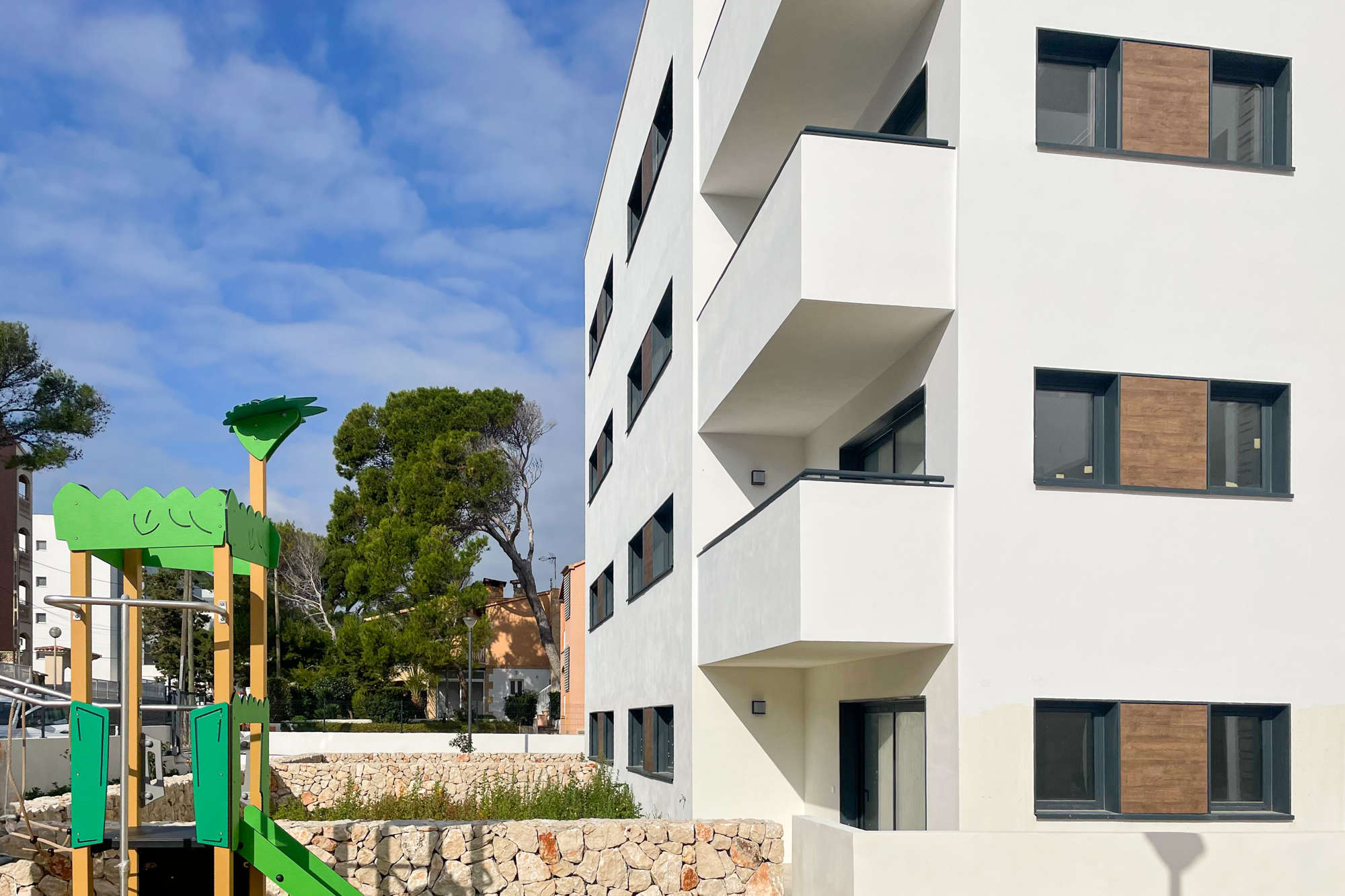 In einer ruhigen Seitenstraße Cala Ratjadas, unweit der Avinguda Cala Agulla, ca. 800 m Meter von den Badebuchten Calla Agulla und Cala Lliteras entfernt liegt dieses Neubauobjekt eines namenhaften Bauträgers im Nordosten Mallorcas.