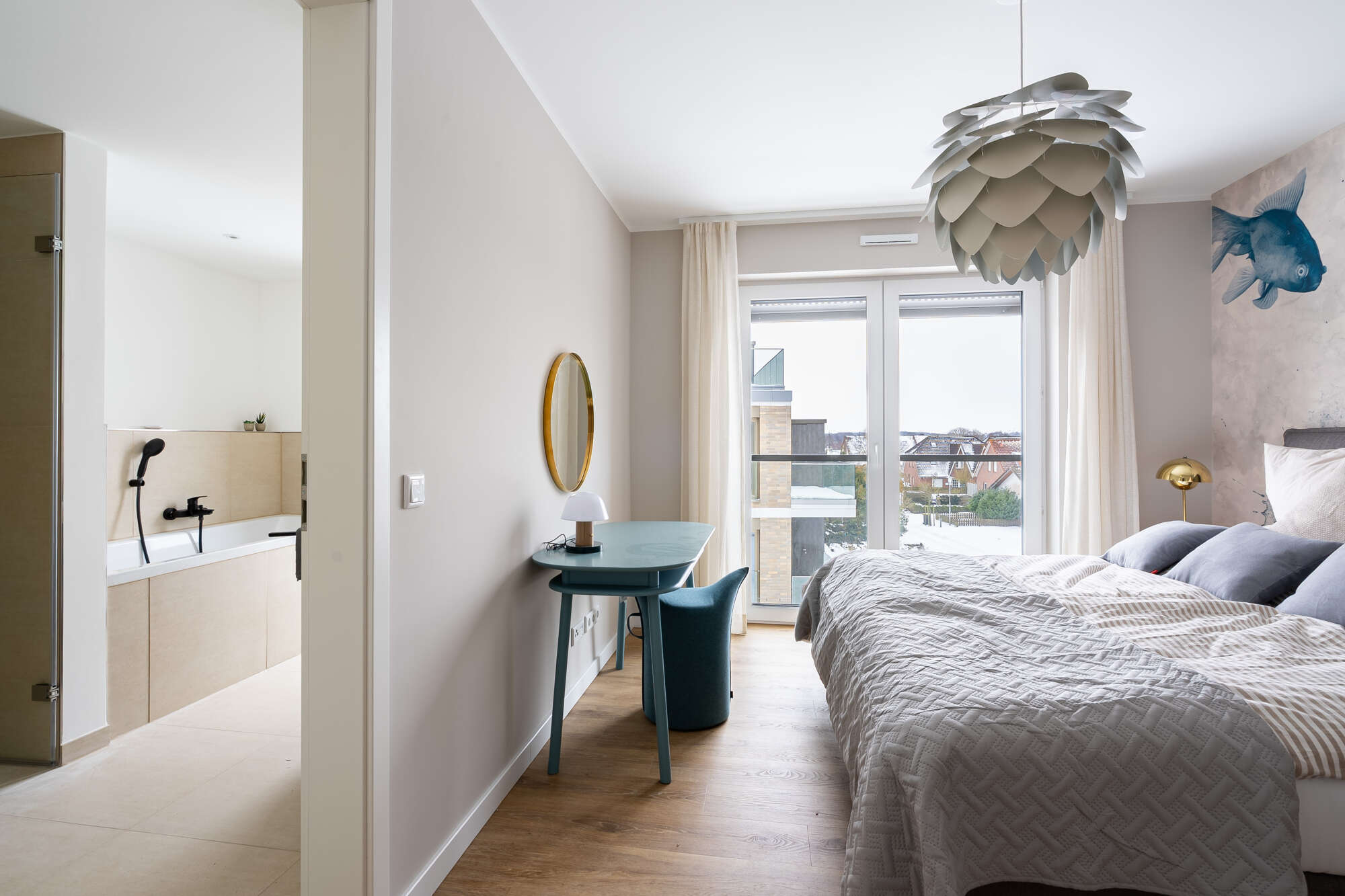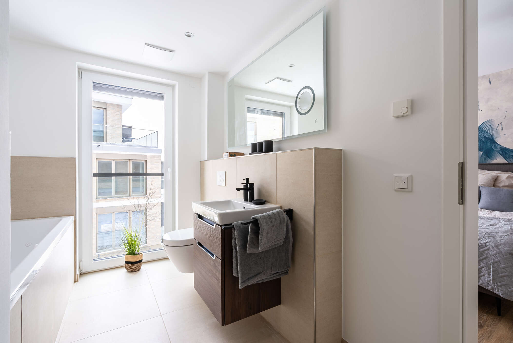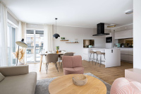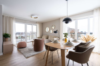 Die exklusive und komfortabel ausgestattete Wohnung besticht durch helle, freundliche Räume mit bodentiefen Fenstern, die einen exklusiven seitlichen Meerblick versprechen.