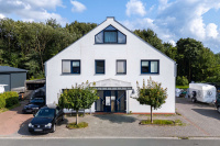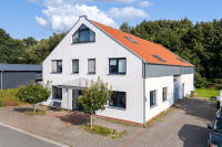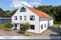 Dachgeschoss: weitere 56 m² ursprünglich geplante Büro- und Aufenthaltsräume sind mittlerweile zu einer kleinen Wohnung umgebaut worden. Falls der zukünftige Käufer diese Räumlichkeiten weiterhin als Wohnung nutzen bzw. vermieten möchte, sollte er sich beim zuständigen Bauamt entsprechend informieren bzw. eine Genehmigung einholen.