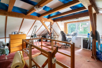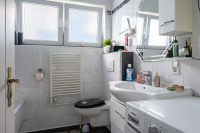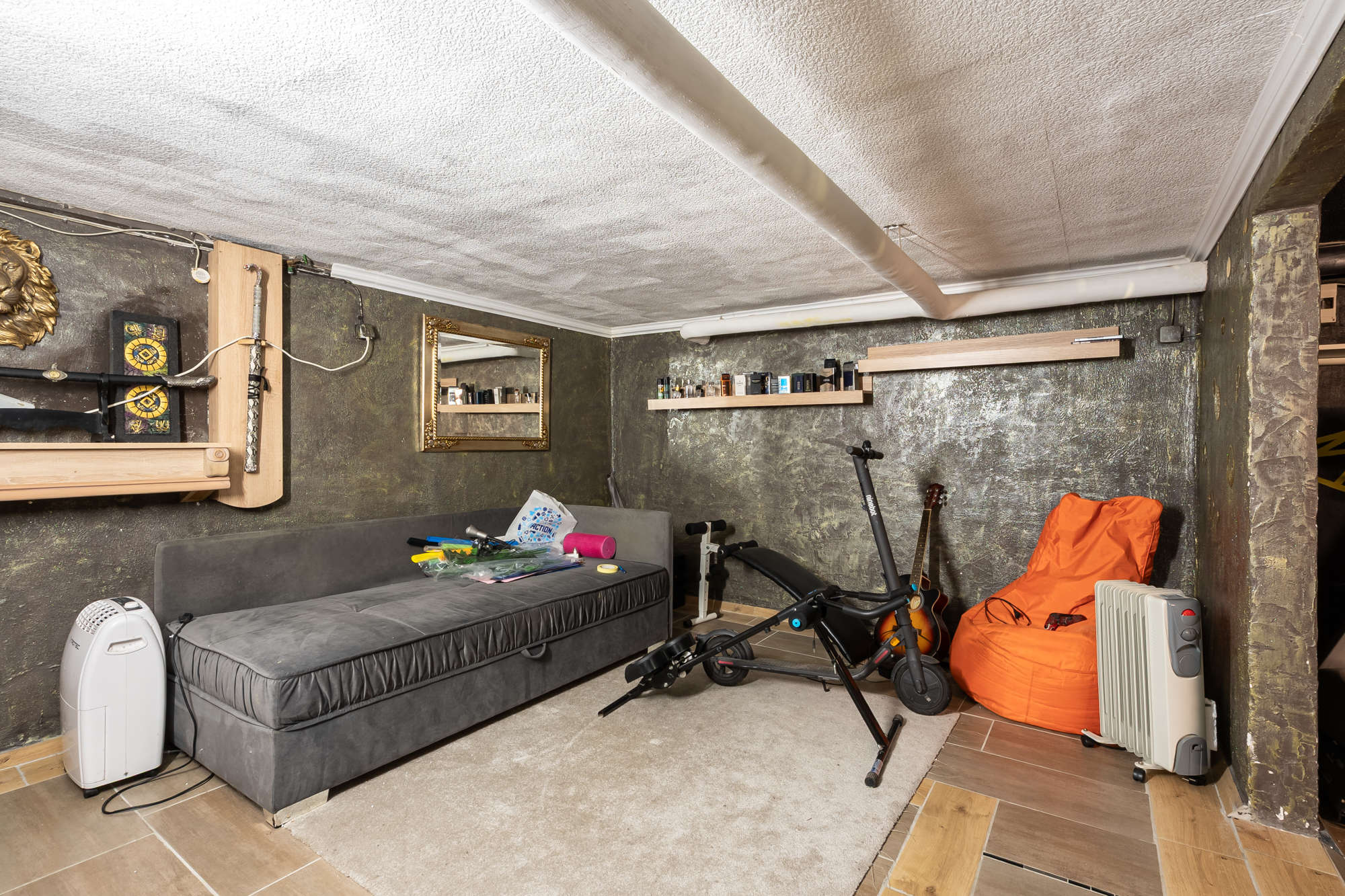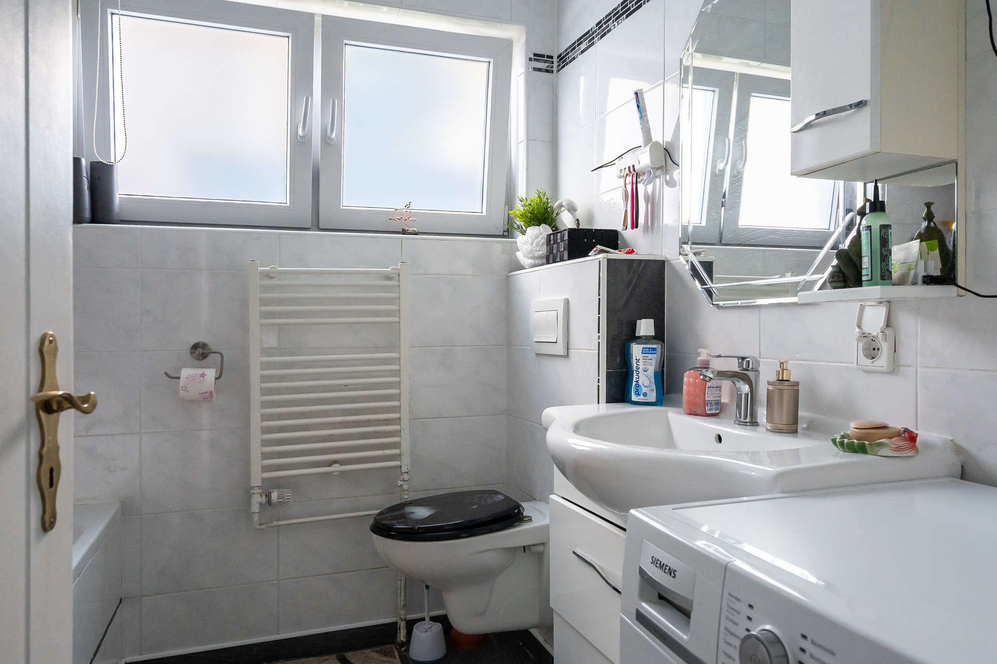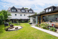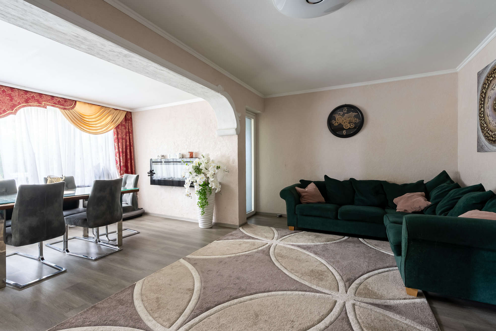 Das Herzstück des Hauses bildet das großzügig geschnittene Wohnzimmer, das dank großer Fensterflächen mit viel Tageslicht erfüllt ist und einen schönen Blick ins Grüne bietet. Hier lässt sich nicht nur entspannt wohnen, sondern auch eine gemütliche Essecke einrichten. Direkt angrenzend lädt der helle Wintergarten zum Verweilen ein – ein geschützter Raum, der den Garten optisch ins Haus holt und besonders in der Übergangszeit zusätzlichen Wohnkomfort schafft. Die Küche ist mit einer modernen Einbauküche ausgestattet und überzeugt durch ihre Funktionalität. Die angrenzenden Räume bieten als Schlaf-, Kinder- oder Arbeitszimmer vielfältige Gestaltungsmöglichkeiten für unterschiedliche Lebenssituationen. Das Badezimmer ist in zeitlosem Weiß-Schwarz gehalten und mit Dusche, Badewanne, WC und Waschtisch vollständig ausgestattet. Über eine Treppe im Flur gelangen Sie in das bereits zum Ausbau vorbereitete Dachgeschoss, das weiteren Raum für individuelle Nutzungsideen bereithält. Im Untergeschoss befinden sich Kellerräume, die reichlich Platz für Vorräte, Werkstatt oder Lagerfläche bieten.