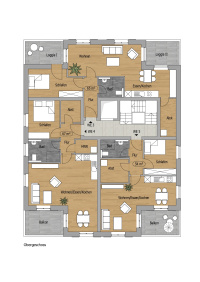 Diese helle und gut geschnittene Neubauwohnung (Wohnungsnummer 4) bietet auf ca. 68 m² ein komfortables Zuhause mit praktischem Raumkonzept. Der offene Wohn- und Essbereich bildet das Herzstück der Wohnung und schafft mit seiner großzügigen Gestaltung eine einladende Atmosphäre. Von hier aus gelangt man direkt auf die Loggia – ein geschützter Außenbereich, der sich ideal zum Entspannen im Freien eignet.