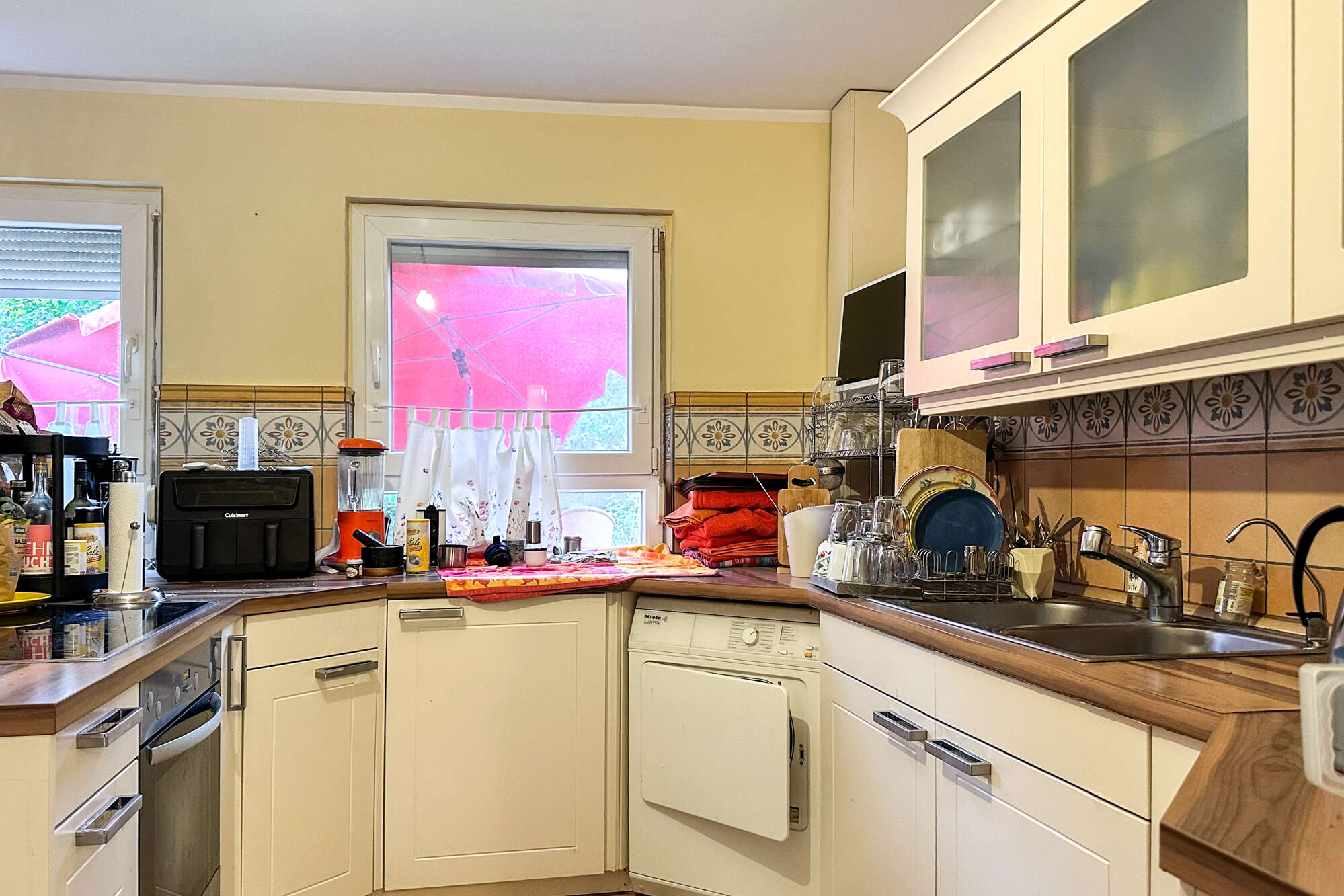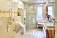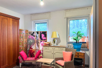 Das zweite, etwa 1920 erbaute Wohnhaus mit ca. 220 m² Wohnfläche dient derzeit als Hauptgebäude der Eigentümer, ein sehr sympathisches, älteres Ehepaar, das sich aus gesundheitlichen Gründen verkleinern möchte. Das Haus beeindruckt mit schönen Altbaudetails, einer verzierten Fassade und einer parkähnlich angelegten Zufahrt. Im Erdgeschoss finden sich helle Wohnräume mit Parkettboden, eine Küche mit Vorratskammer sowie ein großzügiges, bereits altersgerecht modernisiertes Bad. Der gesamte Bereich im Erdgeschoss ist zudem mit Jalousien ausgestattet. Im Obergeschoss stehen weitere Zimmer zur Verfügung, die hauptsächlich als Abstellflächen genutzt werden.