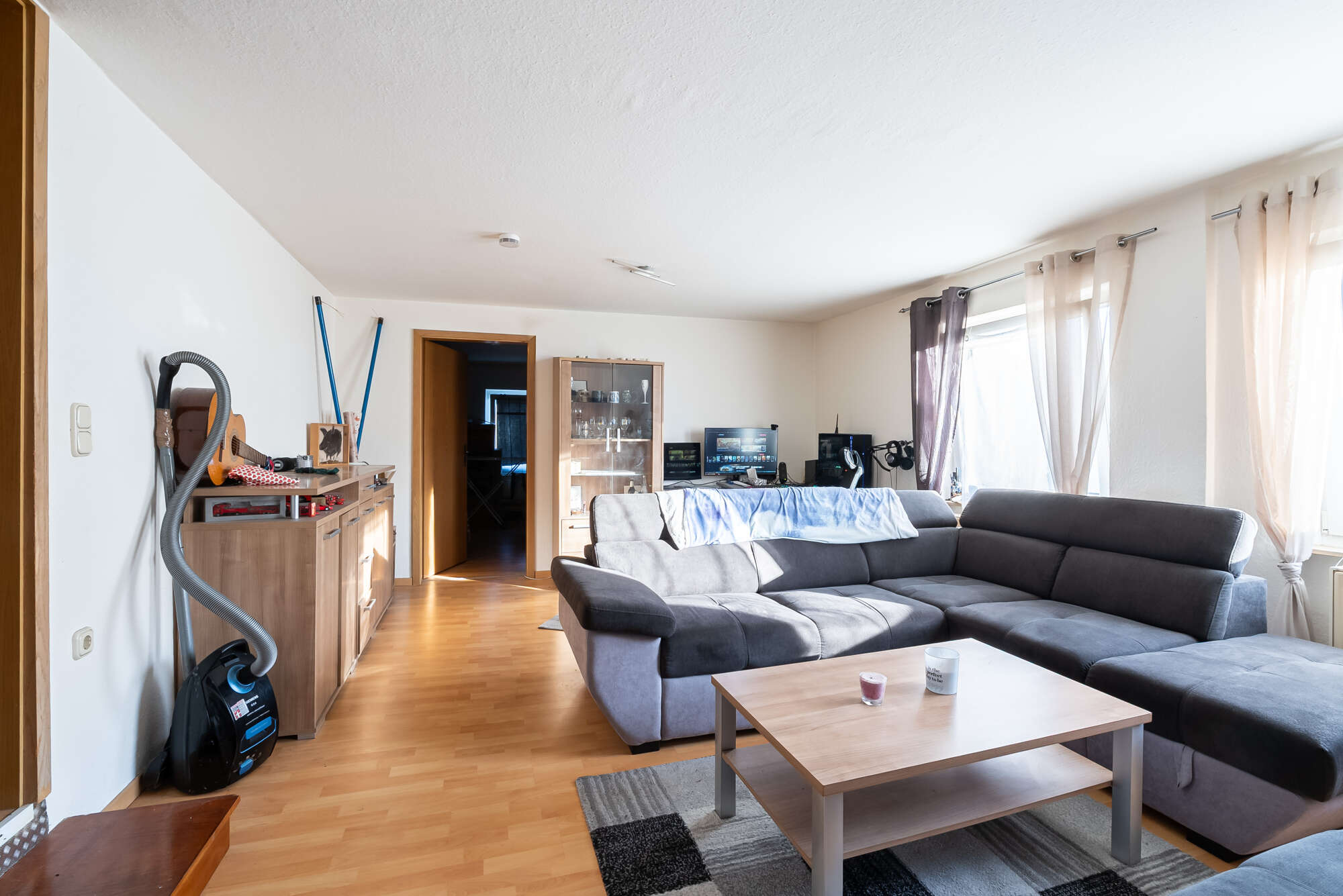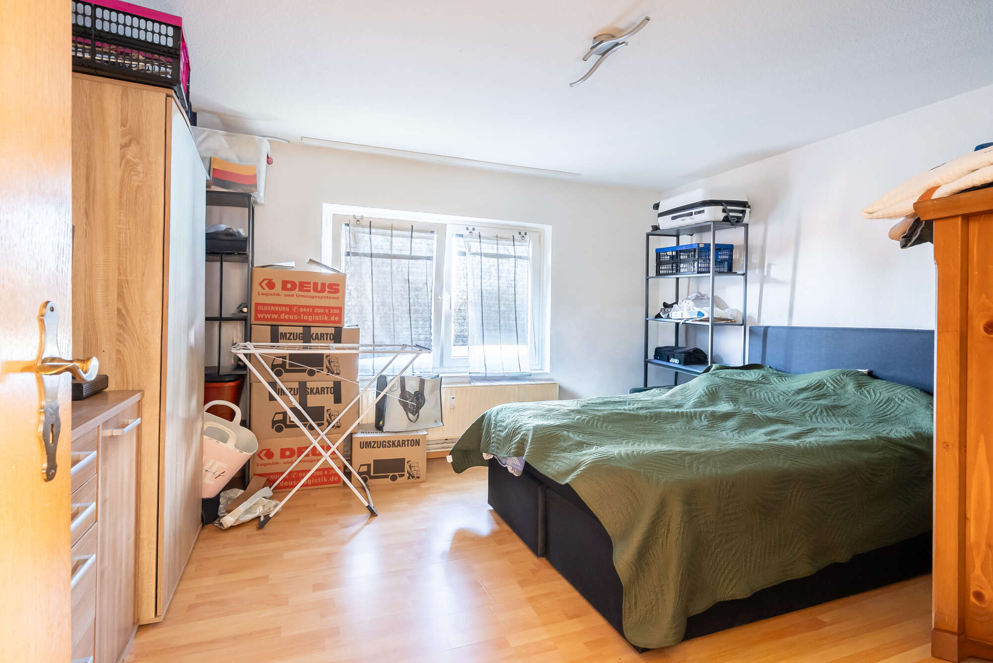 Das Wohnzimmer bietet ausreichend Platz für eine gemütliche Sitzecke. Direkt anschließend befindet sich das Schlafzimmer, das eine angenehme Rückzugsmöglichkeit bietet.