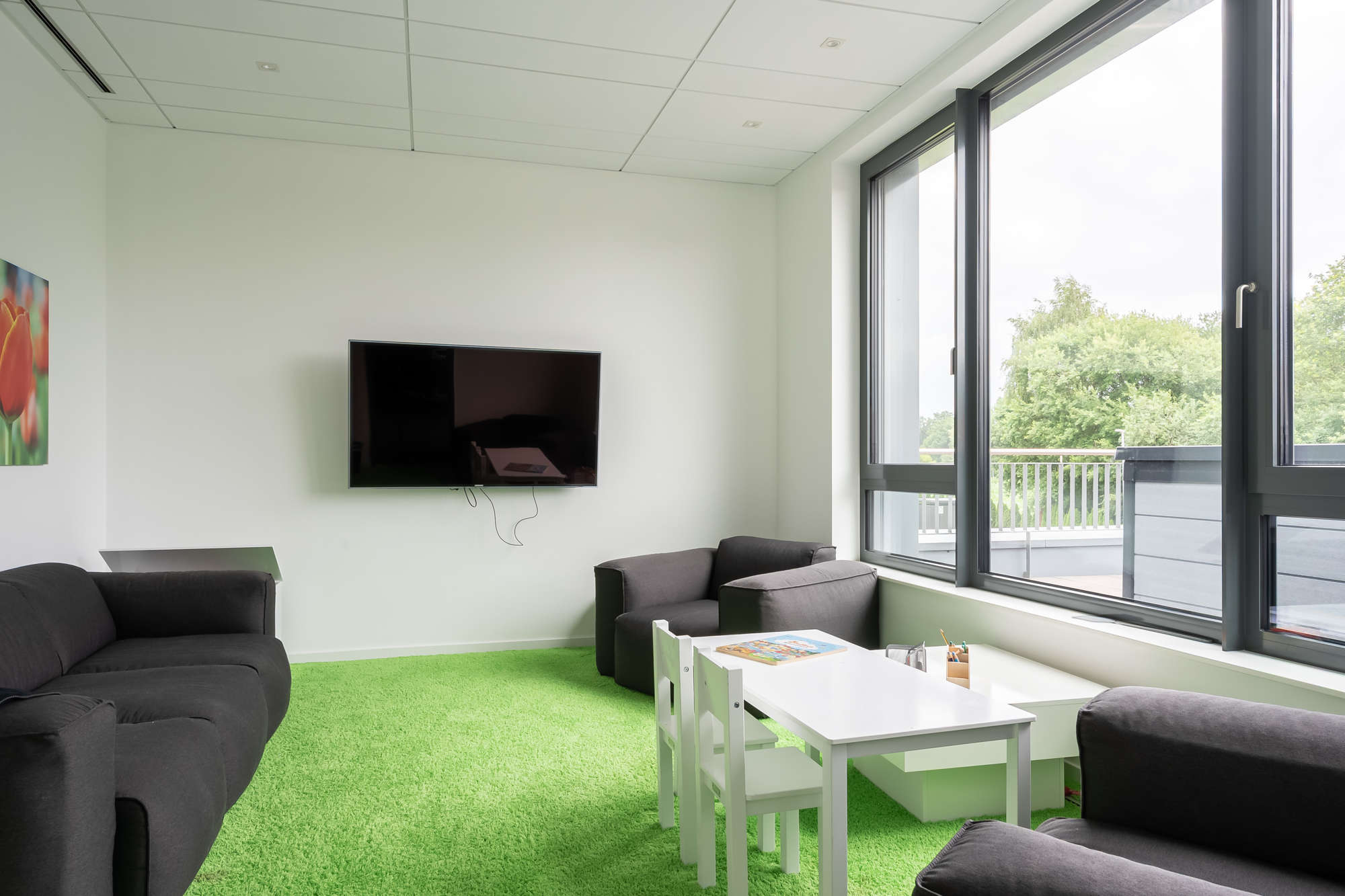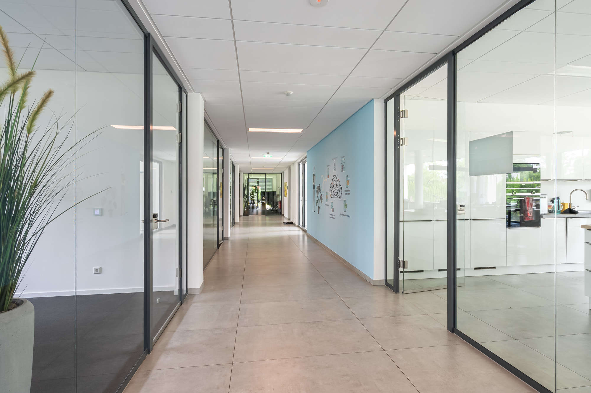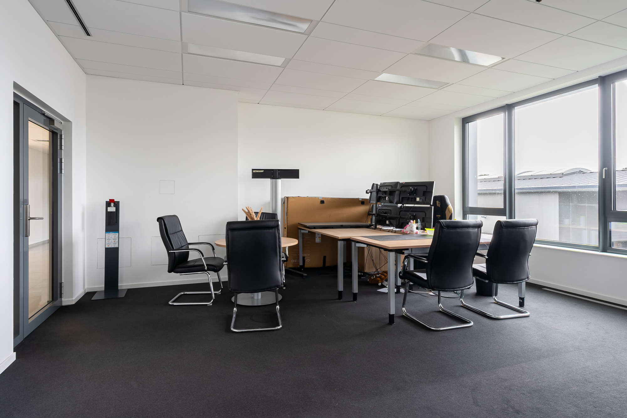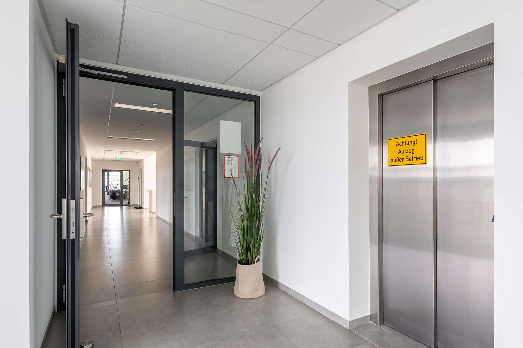 Das 2021 erbaute Gebäude überzeugt durch ein zeitgemäßes, lichtdurchflutetes Design mit großflächigen Panoramafenstern, offenen Raumstrukturen und hohen Decken, die ein angenehmes Raumgefühl schaffen.
