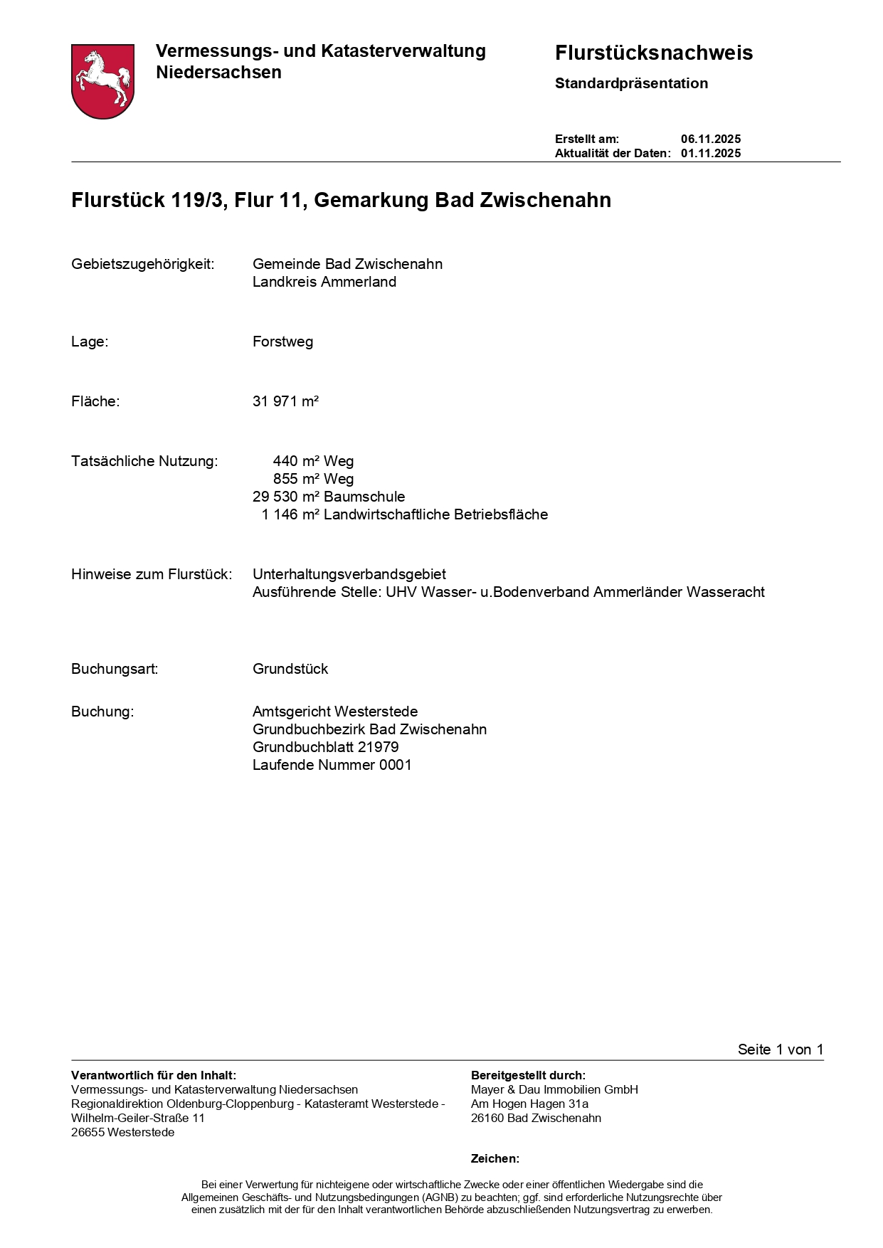 Wir bieten eine zusammenhängende Baumschulfläche von insgesamt ca. 31.971 m² zum Verkauf gegen Höchstgebot an.