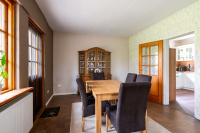 Dieses ansprechende Wohnhaus mit bereits ausgebauter und derzeit vermieteter Einliegerwohnung bietet ein großzügiges Raumgefühl und vielfältige Nutzungsmöglichkeiten. Durch den Eingangsbereich betritt man eine weitläufige Diele, die sofort einen offenen Eindruck vermittelt. Linker Hand öffnet sich das Wohnzimmer, das durch seine Größe und den fließenden Übergang in das Esszimmer besticht. Große Fensterflächen sorgen für Tageslicht und schaffen eine freundliche Wohnatmosphäre. Über den Essbereich gelangt man direkt auf die sonnige Terrasse und weiter in den gepflegten Garten, ideal für entspannte Stunden im Freien. Der Kamin im Wohnzimmer setzt einen gemütlichen Akzent und macht den Raum zu einem harmonischen Mittelpunkt des Hauses.