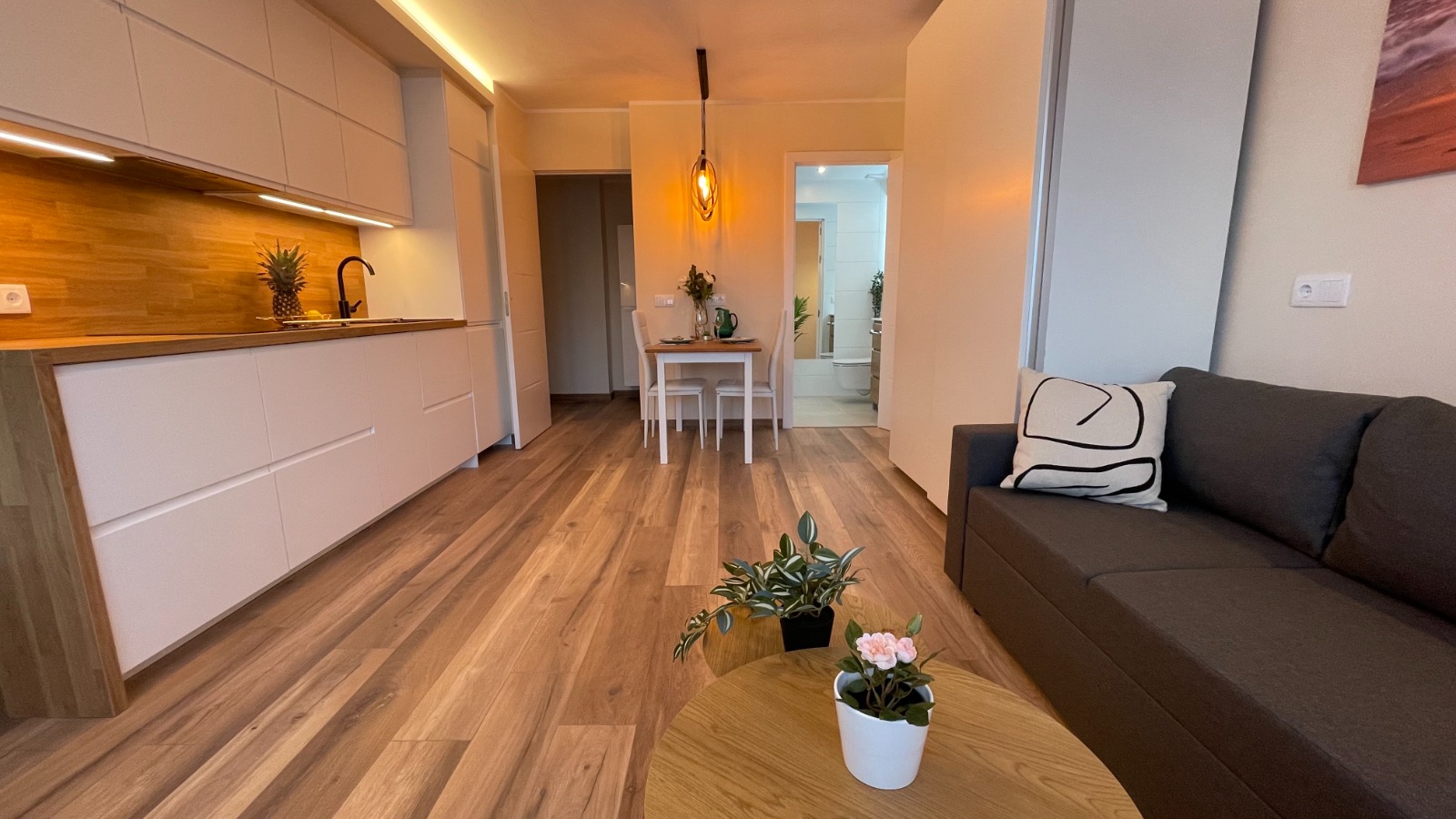 Ab sofort steht dieses hochwertig renovierte Studio in Alcudia zur Langzeitmiete bereit. Auf ca. 30 m² Wohnfläche erwartet Sie ein stilvolles, modernes Wohnambiente, das keine Wünsche offenlässt. Das Bad wurde komplett neu gestaltet und verfügt über eine elegante, moderne Dusche – ideal für einen entspannten Start in den Tag.