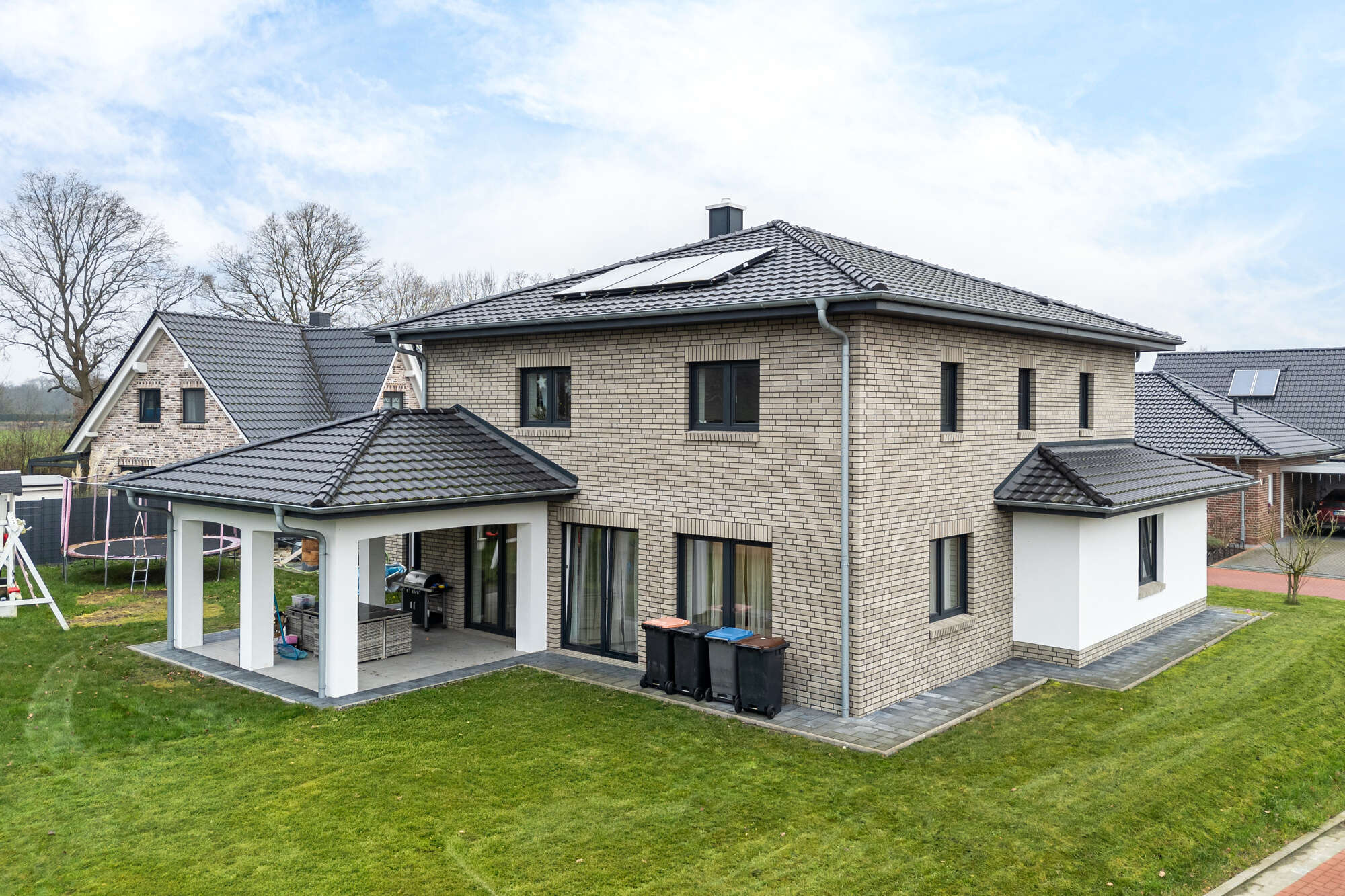 Der Außenbereich rundet das Angebot perfekt ab: Ein gepflegter Garten bietet viel Platz zum Spielen, Entspannen und für gemeinsame Familienzeit im Freien.