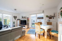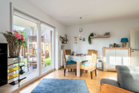 Am Ende des Flurs erreichen Sie auf der linken Seite das ruhig gelegene Schlafzimmer, welches über einen direkten Zugang zur Terrasse verfügt. Gegenüber befindet sich das helle und großzügig geschnittene Wohnzimmer mit Blick ins Freie. Die Terrasse ist nach Südwesten ausgerichtet und bietet ideale Voraussetzungen für sonnige Nachmittage und entspannte Abendstunden.