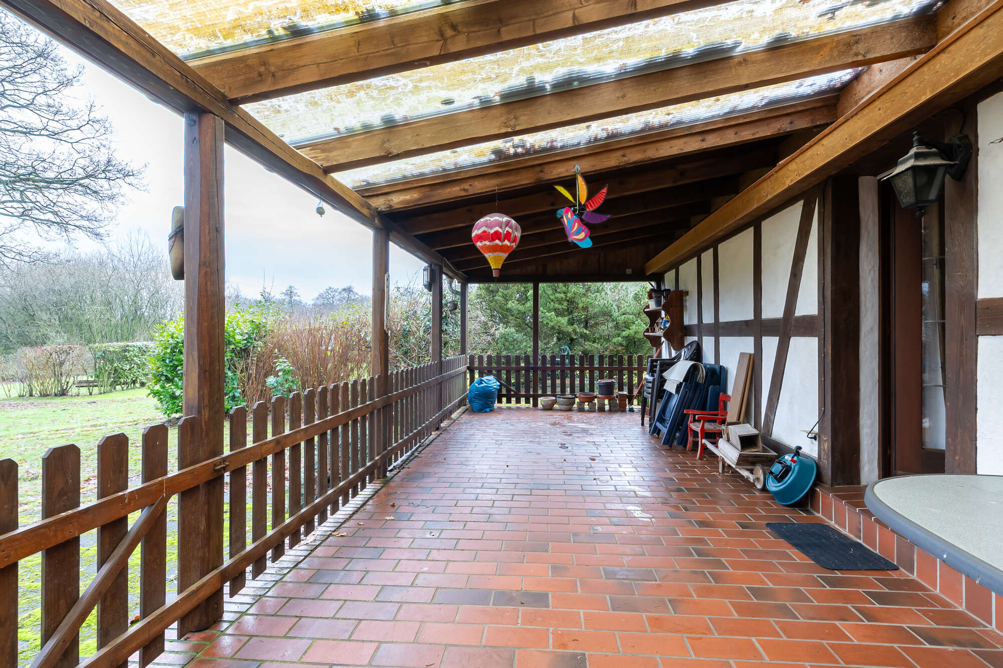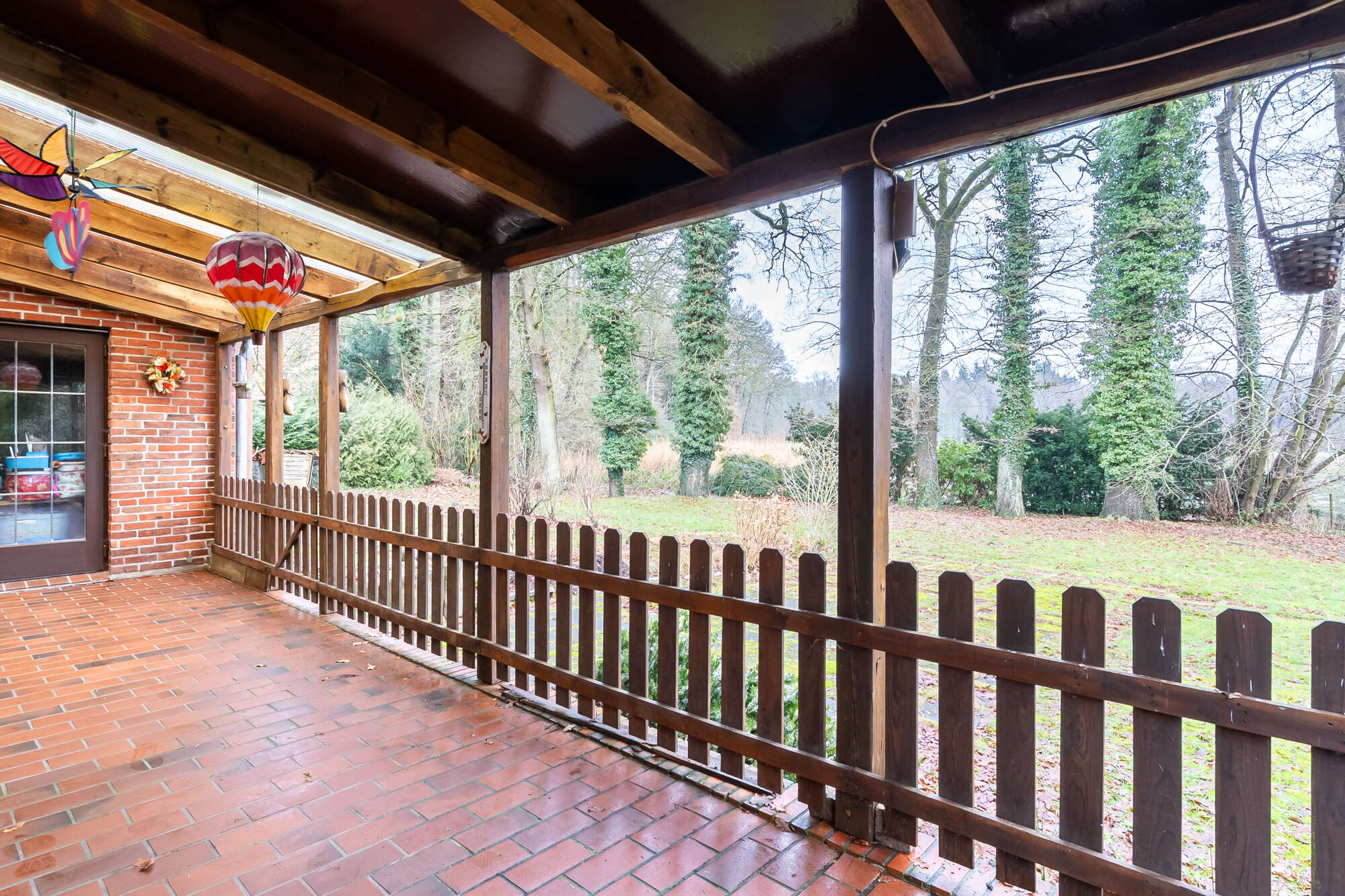 Im Erdgeschoss befinden sich drei Schlafzimmer, ein Wohn- und Essbereich, ein großzügiges Wohnzimmer sowie ein separates Kaminzimmer. Ergänzt wird das Raumangebot durch ein Badezimmer und einen großzügigen Abstellraum mit direktem Zugang zur überdachten Terrasse.