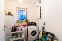 Auch der Hauswirtschaftsraum ist mit einem Fenster ausgestattet und bietet praktischen Platz für Waschmaschinen, Trockner und zusätzliche Abstellmöglichkeiten.
