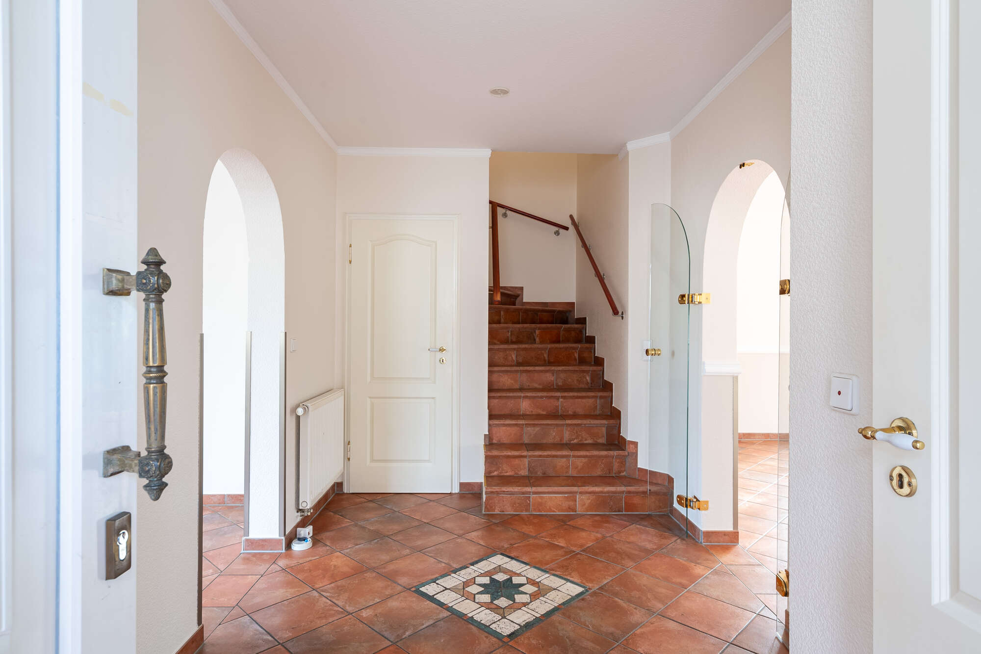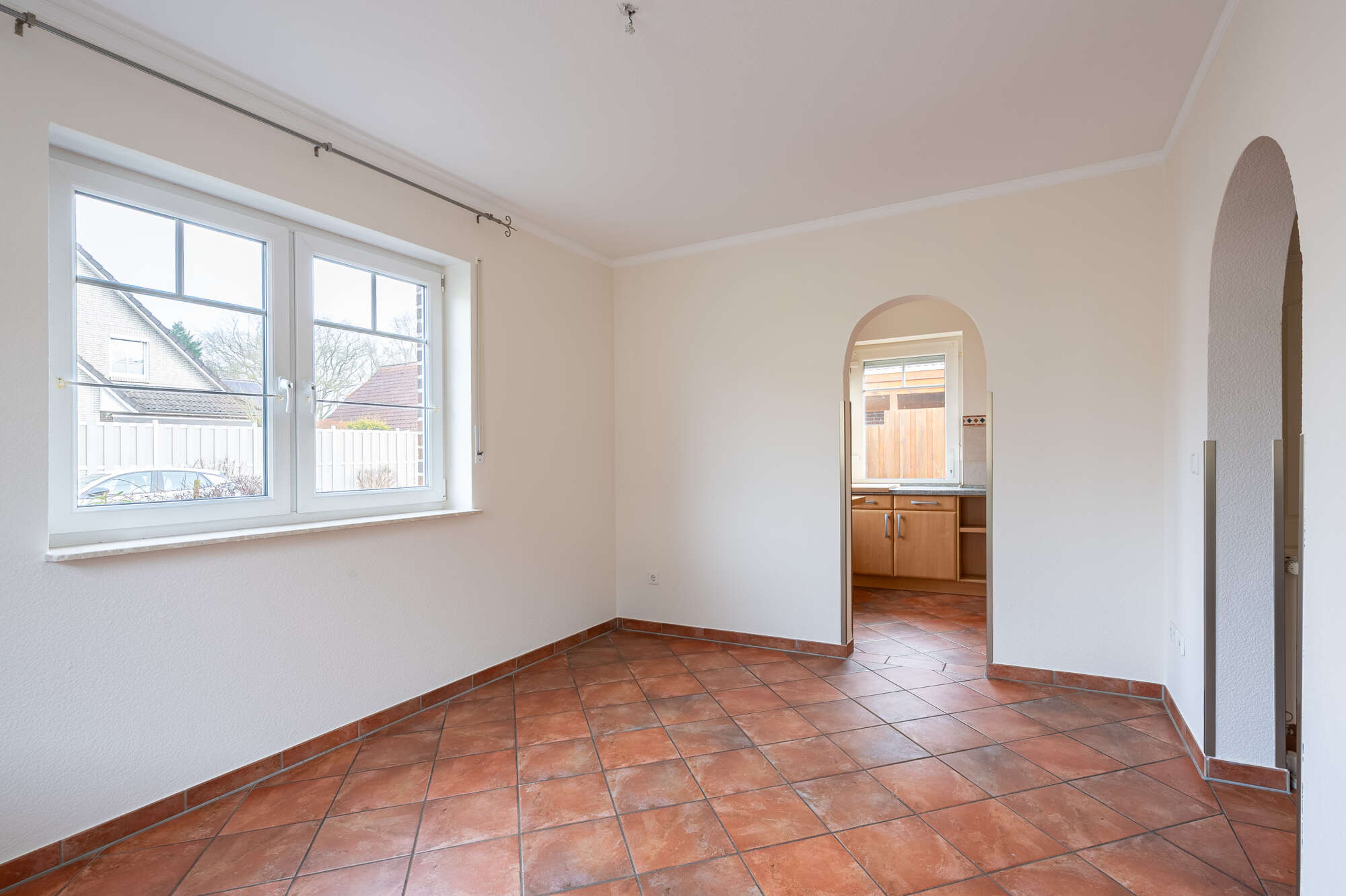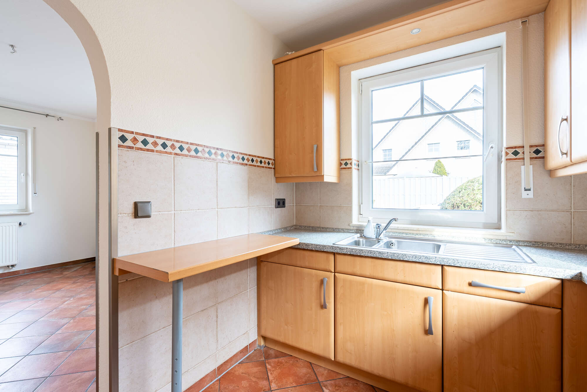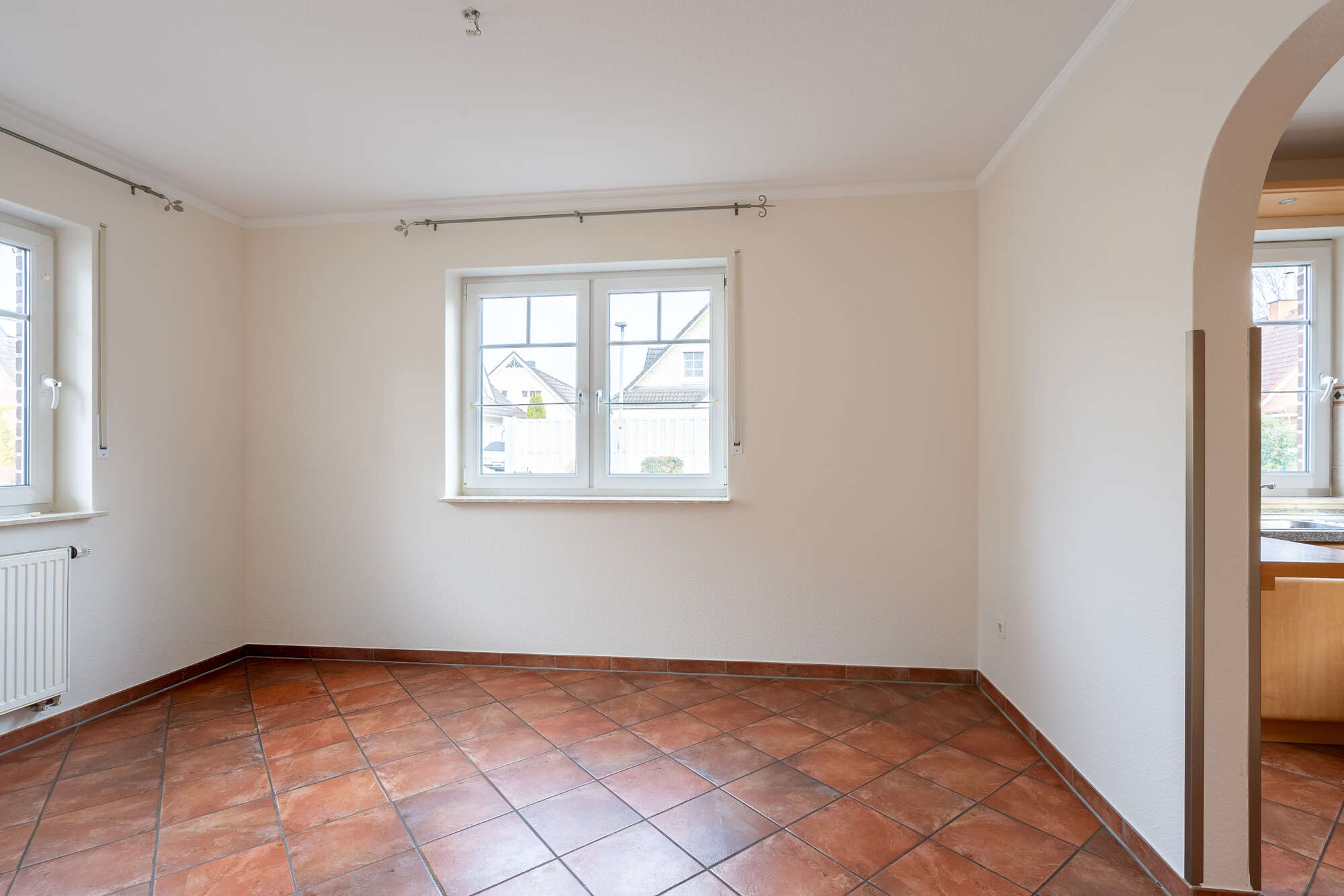 Bereits beim Betreten des Erdgeschosses überzeugt die durchdachte Raumaufteilung: Vom zentralen Flur aus sind alle Räume bequem erreichbar. Neben der Küche mit angrenzendem, hellem Essbereich befindet sich ein praktischer Abstellraum sowie ein Gäste-WC.