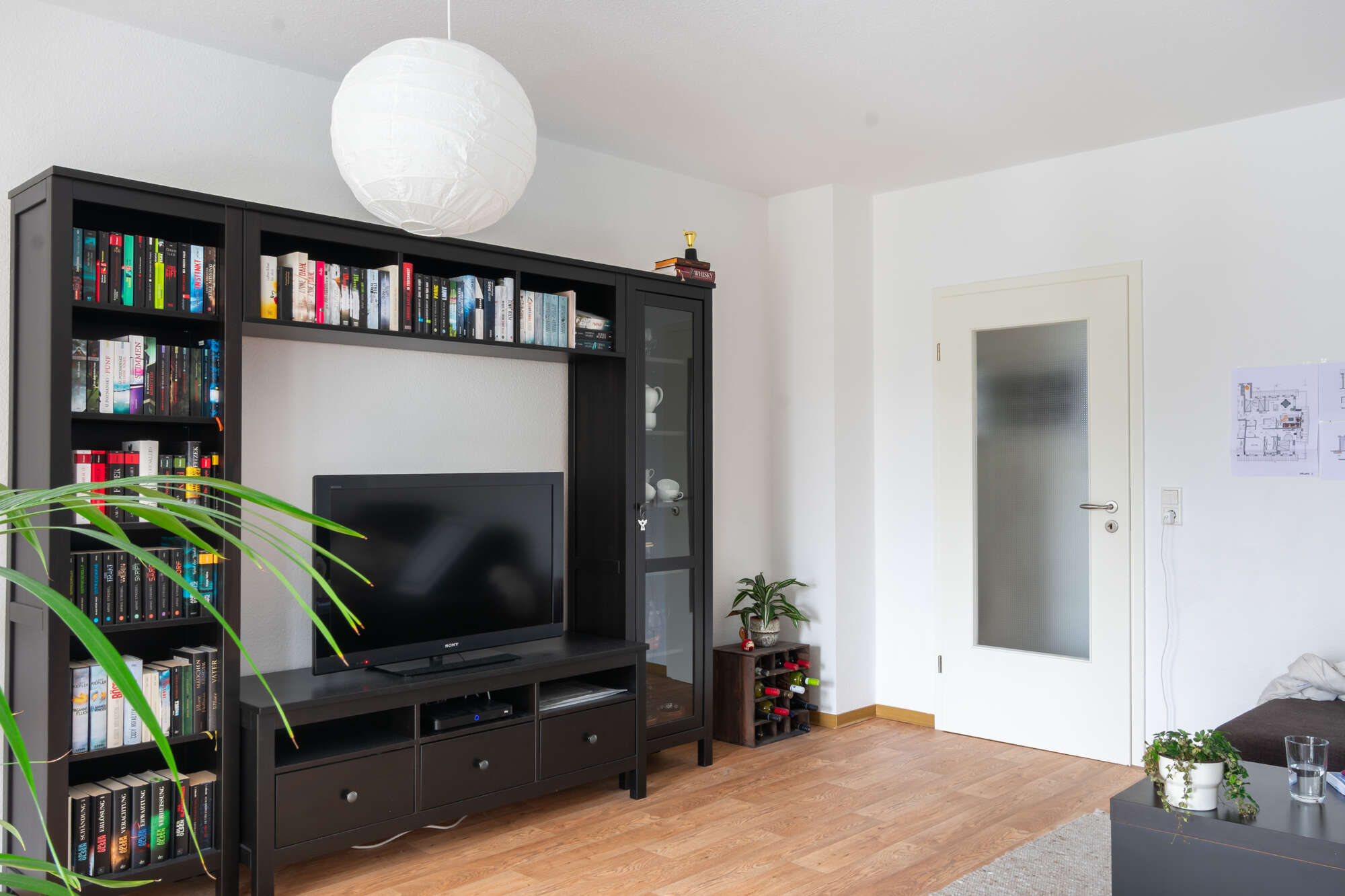 Auf der linken Seite des Flurs liegt das großzügige und lichtdurchflutete Wohnzimmer mit Zugang zum Balkon. Dieser lädt zum Entspannen ein und bietet Platz für gemütliche Stunden im Freien.