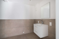 Der Wohnbereich wirkt großzügig, offen und ruhig und bildet den perfekten Rückzugsort. Nur wenige Schritte führen hinaus auf die Terrasse, die zusätzlichen Freiraum bietet und das Wohnen nach draußen erweitert. Vom Schlafzimmer aus gelangen Sie direkt in das barrierefreie Badezimmer, das mit bodengleicher Dusche, Komfort im Alltag garantiert.