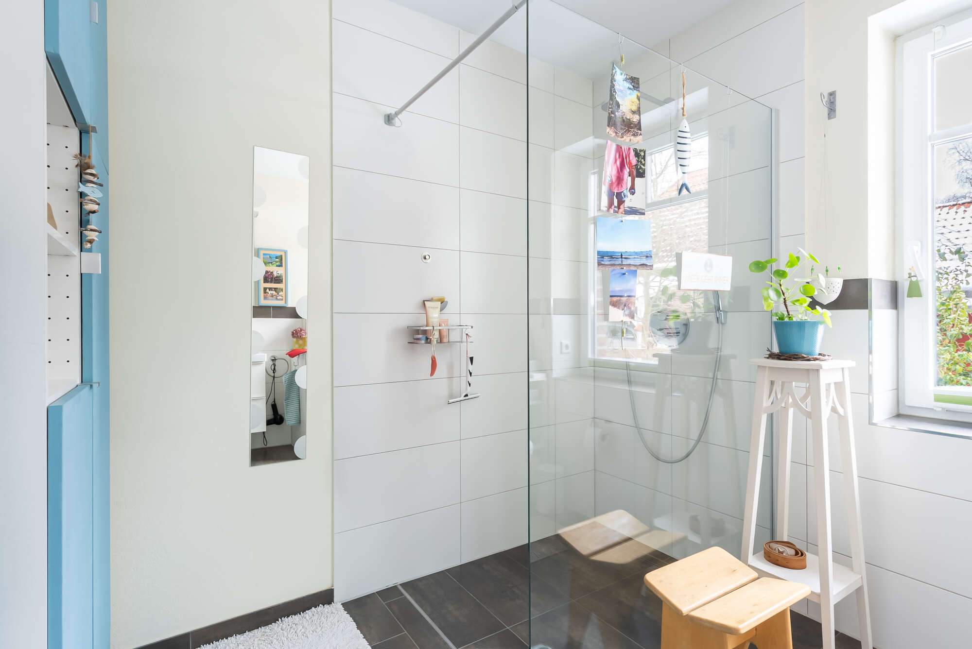 Die Wohnung verfügt über ein Badezimmer mit ebenerdiger Dusche, einen großzügigen Schlafbereich sowie ein weiteres Zimmer, das vielseitig genutzt werden kann.