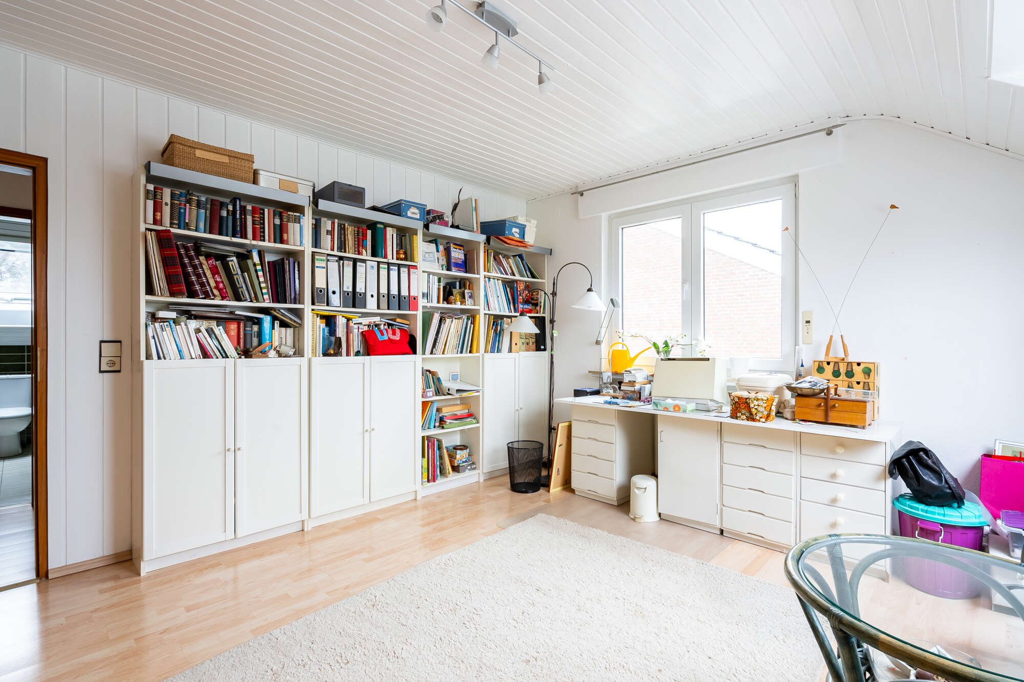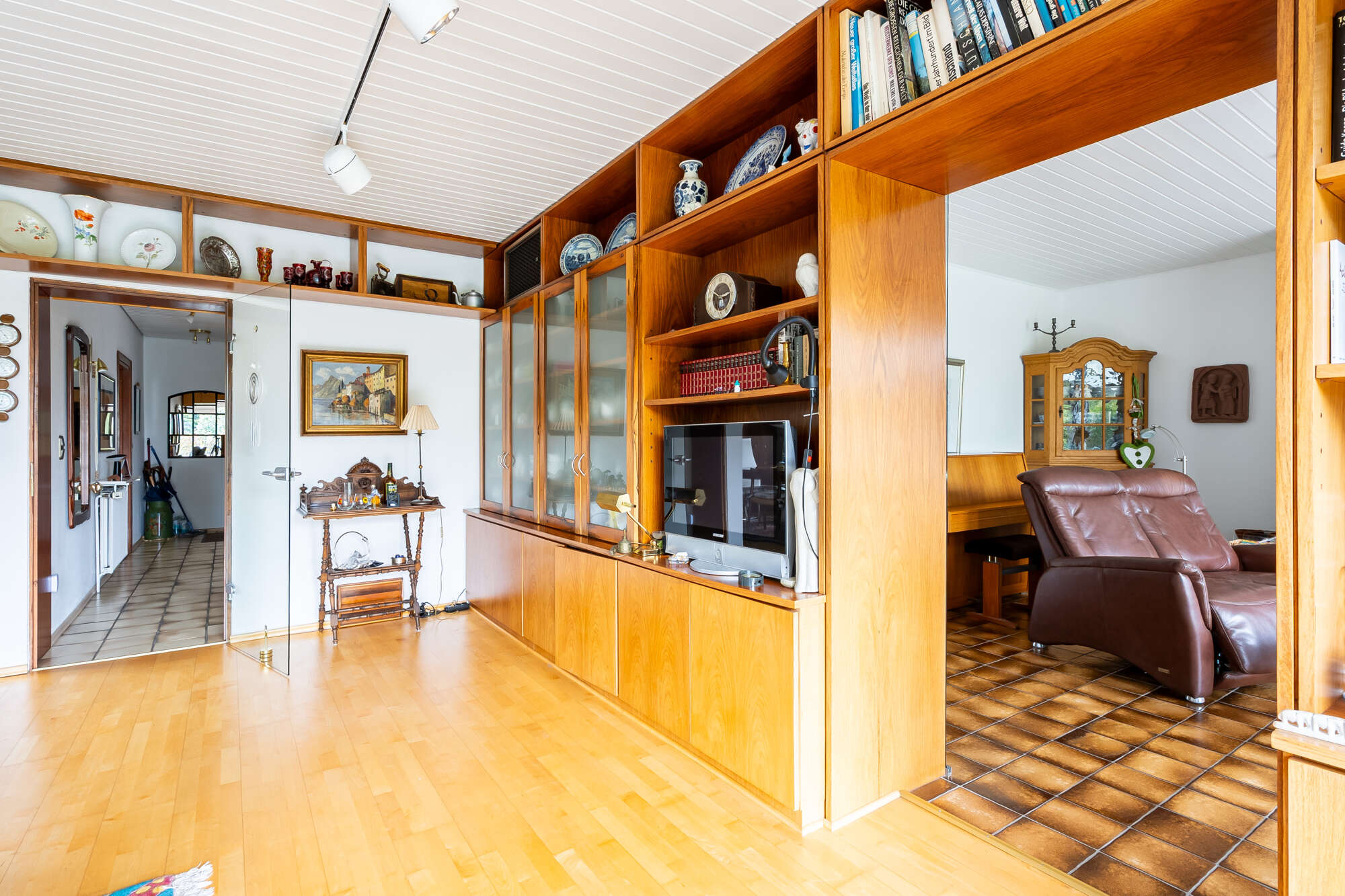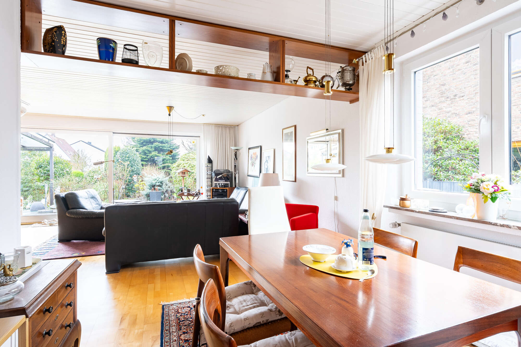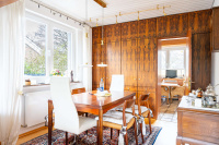 Das Herzstück des Erdgeschosses bildet der helle Wohn- und Essbereich. Dank der bodentiefen Fenster zur Gartenseite wird dieser Bereich von Tageslicht durchflutet und schafft eine besonders warme und freundliche Atmosphäre. Ein absolutes Highlight ist das separate Kaminzimmer direkt neben dem Wohnzimmer – ebenfalls mit bodentiefem Fenster und Blick ins Grüne. Der funktionsfähige Kamin sorgt hier für gemütliche Stunden und eine ganz besondere Wohnqualität.