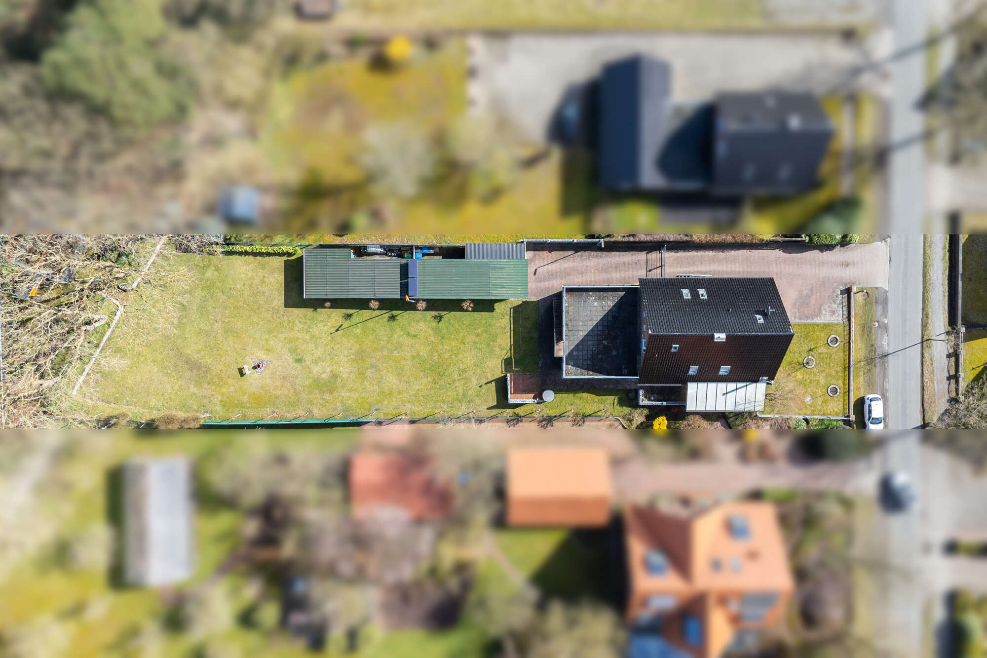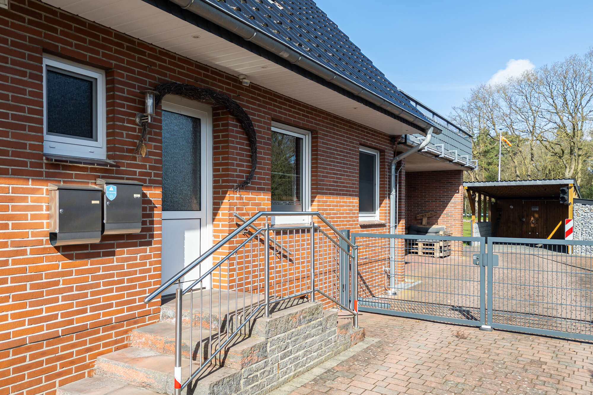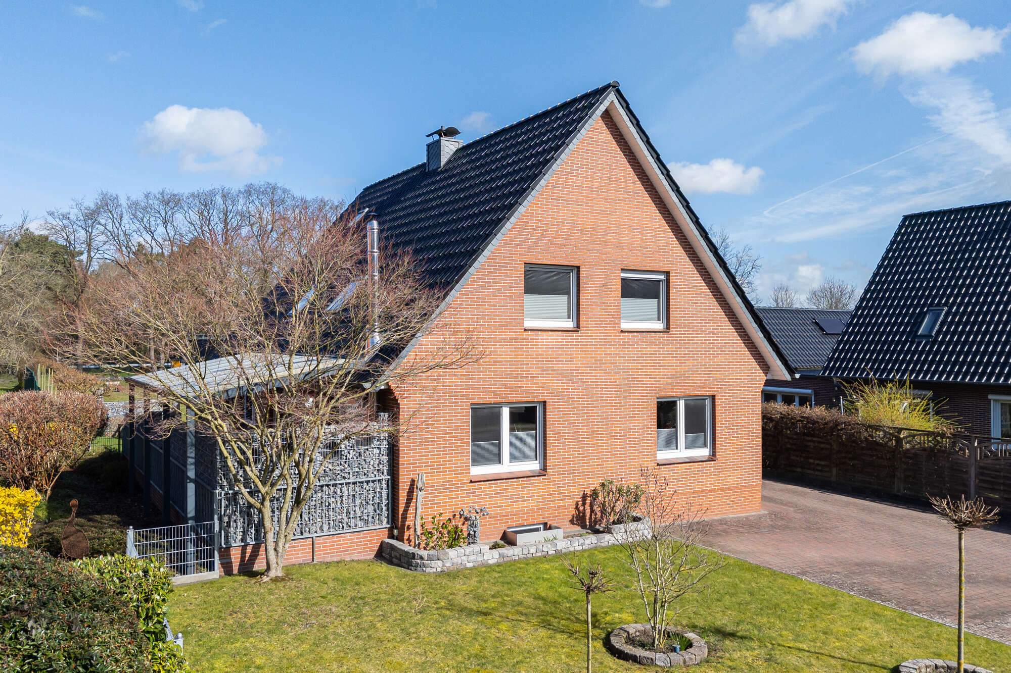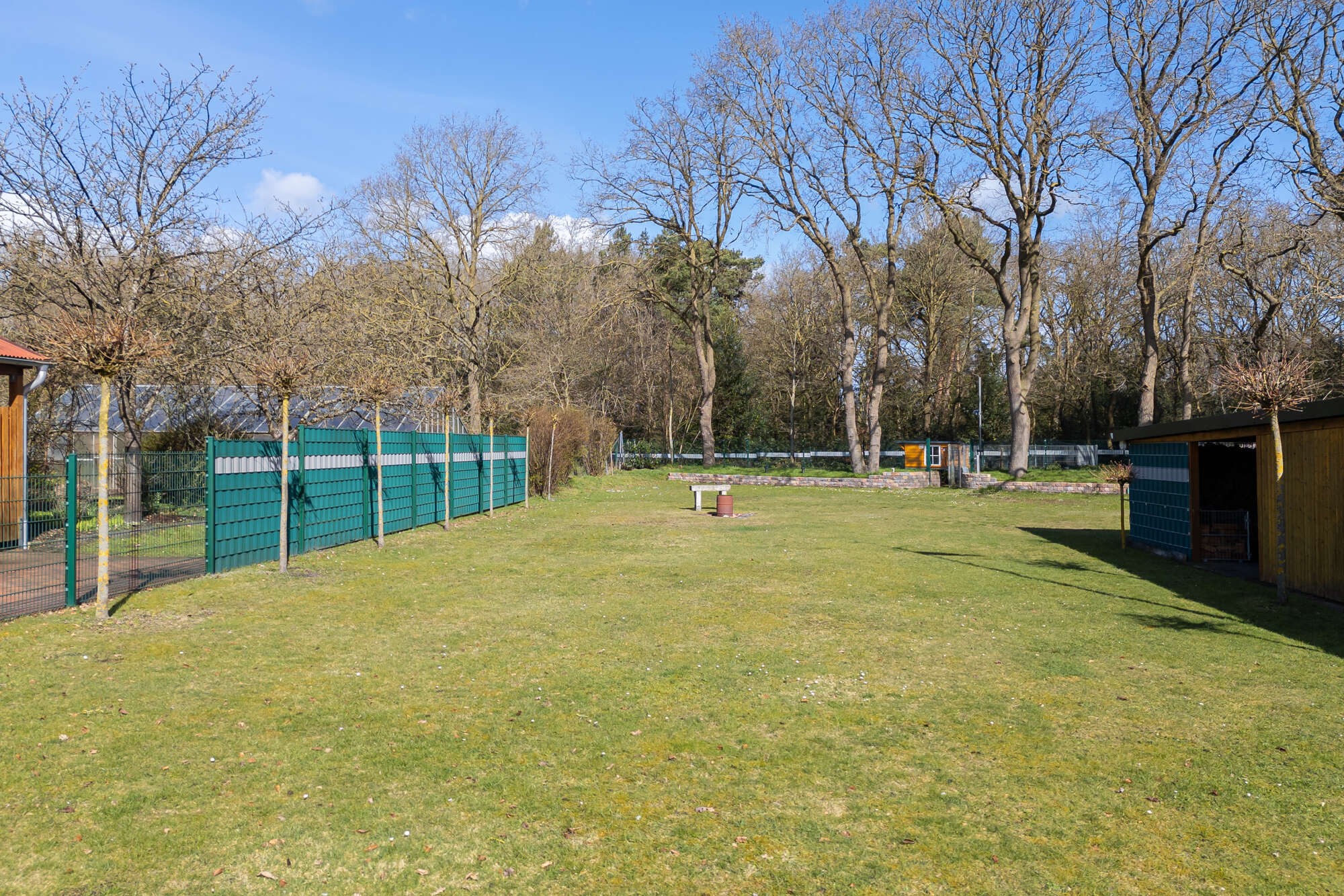 Der großzügige Garten ist vollständig eingefriedet und pflegeleicht angelegt. Ein kleines, vom Nachbarn gepachtetes Grundstück erweitert die nutzbare Fläche zusätzlich. Zur Immobilie gehören eine Garage, ein Carport sowie ein Schuppen.
