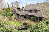 Im Obergeschoss befinden sich ein großzügiges Schlafzimmer mit angrenzendem Ankleidezimmer und Badezimmer en Suite mit Dusche, Wanne und Sauna. Ein weiteres vielseitig nutzbares Zimmer sowie ein Vollbad runden das Raumangebot gelungen ab.