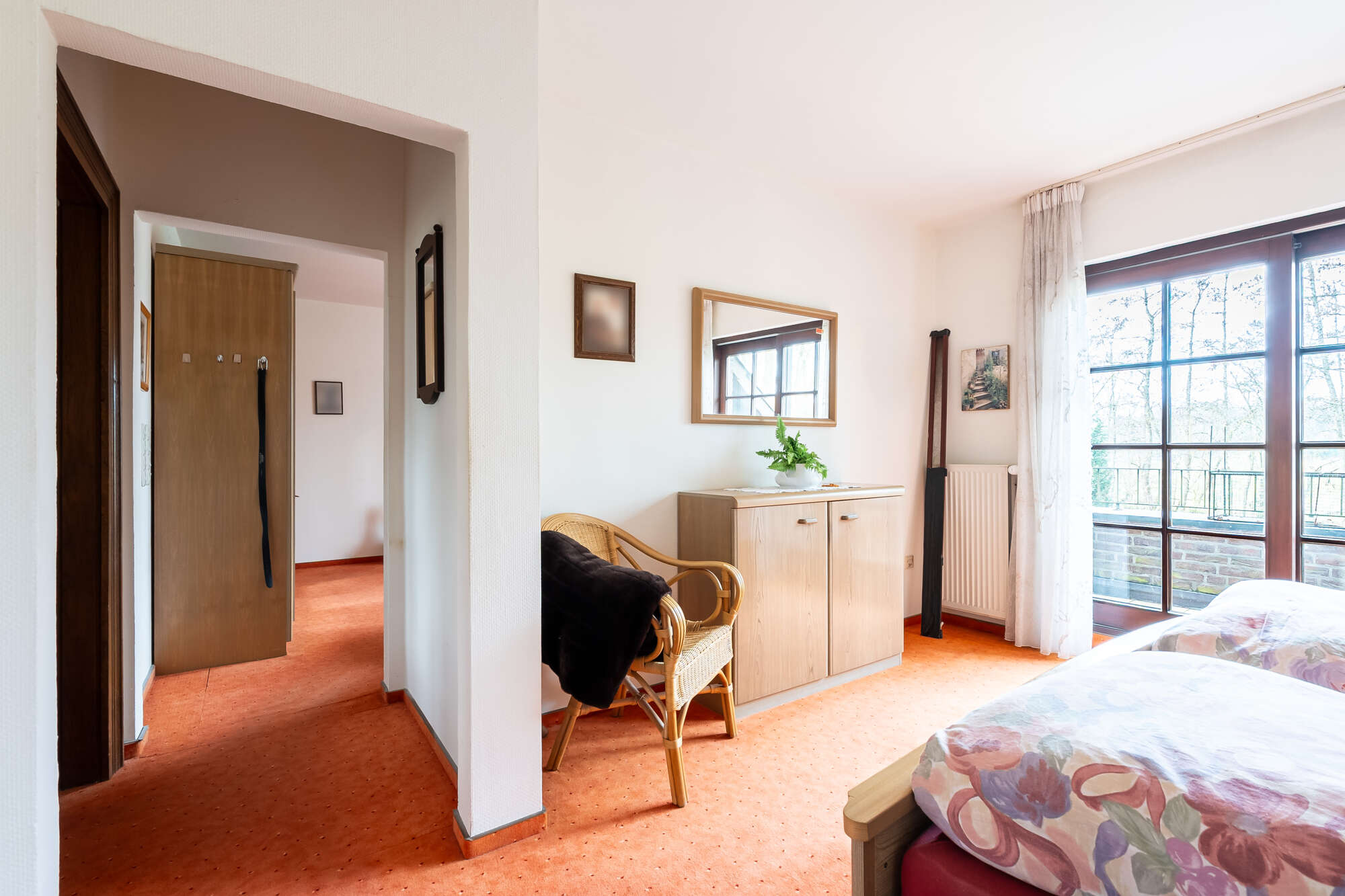 Bodentiefe Fensterelemente bieten den praktischen Zugang zum Außenbereich und sorgen für viel Tageslicht.