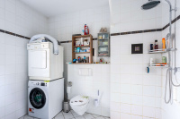 - modernes Bad mit ebenerdiger Dusche, Waschtisch, WC sowie Waschmaschinenanschluss