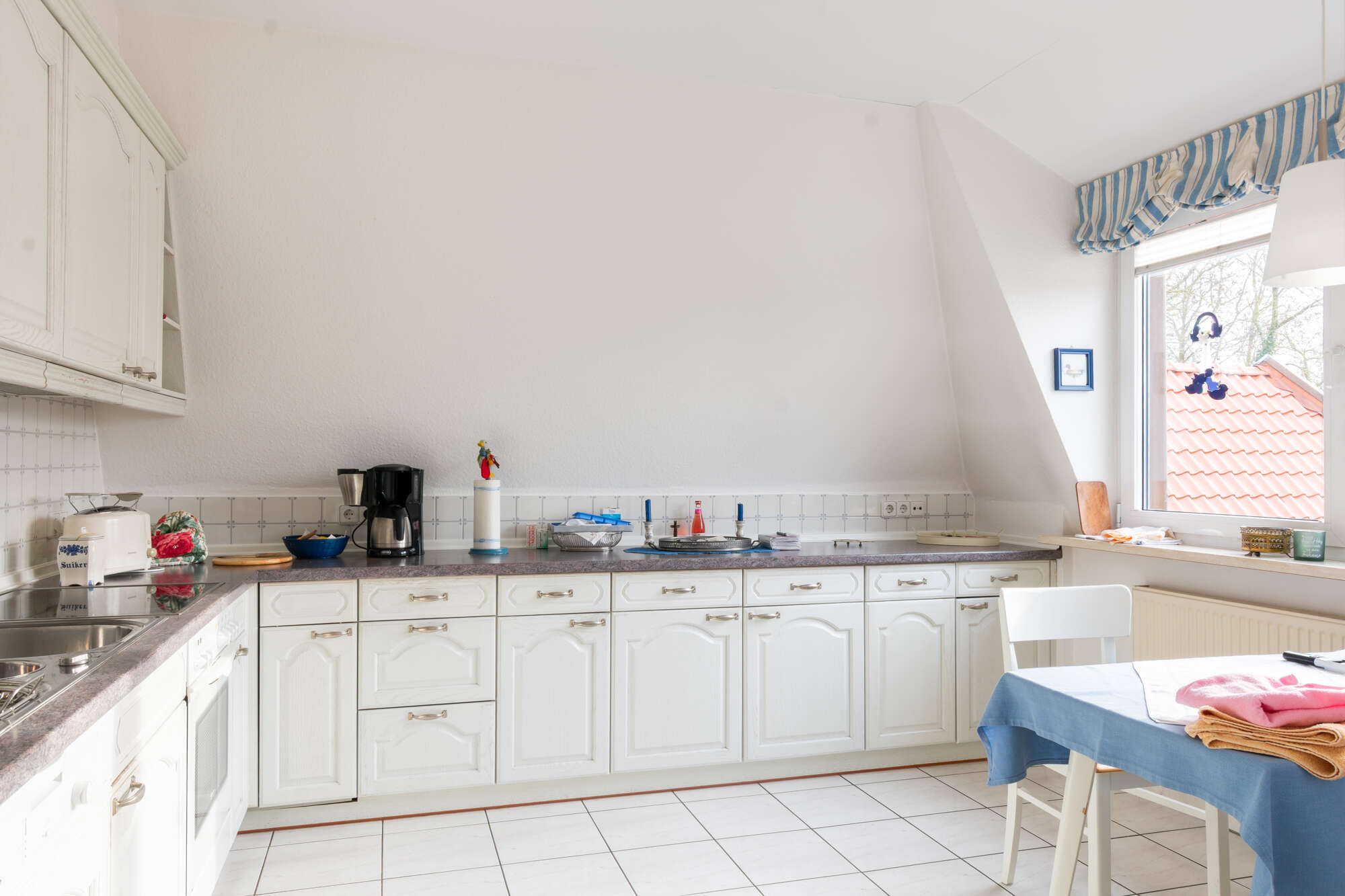 Angrenzend befindet sich das lichtdurchflutete Wohnzimmer, das durch seine Größe und Helligkeit besticht und vielfältige Gestaltungsmöglichkeiten bietet. Die separate Küche ist großzügig geschnitten und bietet viel Platz für umfangreiche Kücheneinrichtungen sowie zusätzlichen Stauraum. Auch ein Essbereich lässt sich hier problemlos integrieren.