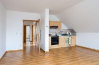 Im Obergeschoss befinden sich zwei weitere Wohneinheiten. Die erste Wohnung mit ca. 45 m² bietet ein Schlafzimmer, ein Badezimmer sowie einen offenen Wohn- und Essbereich.