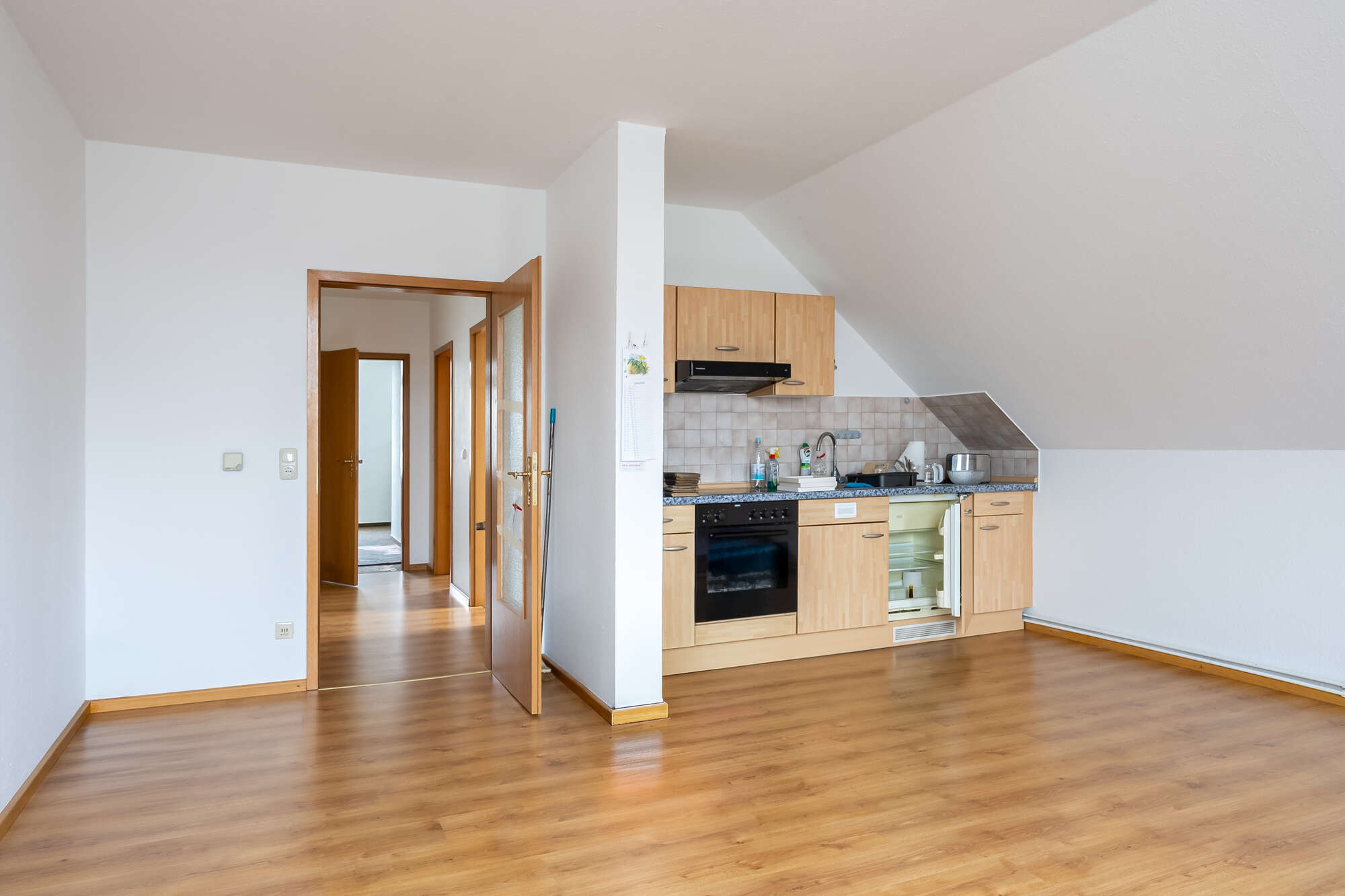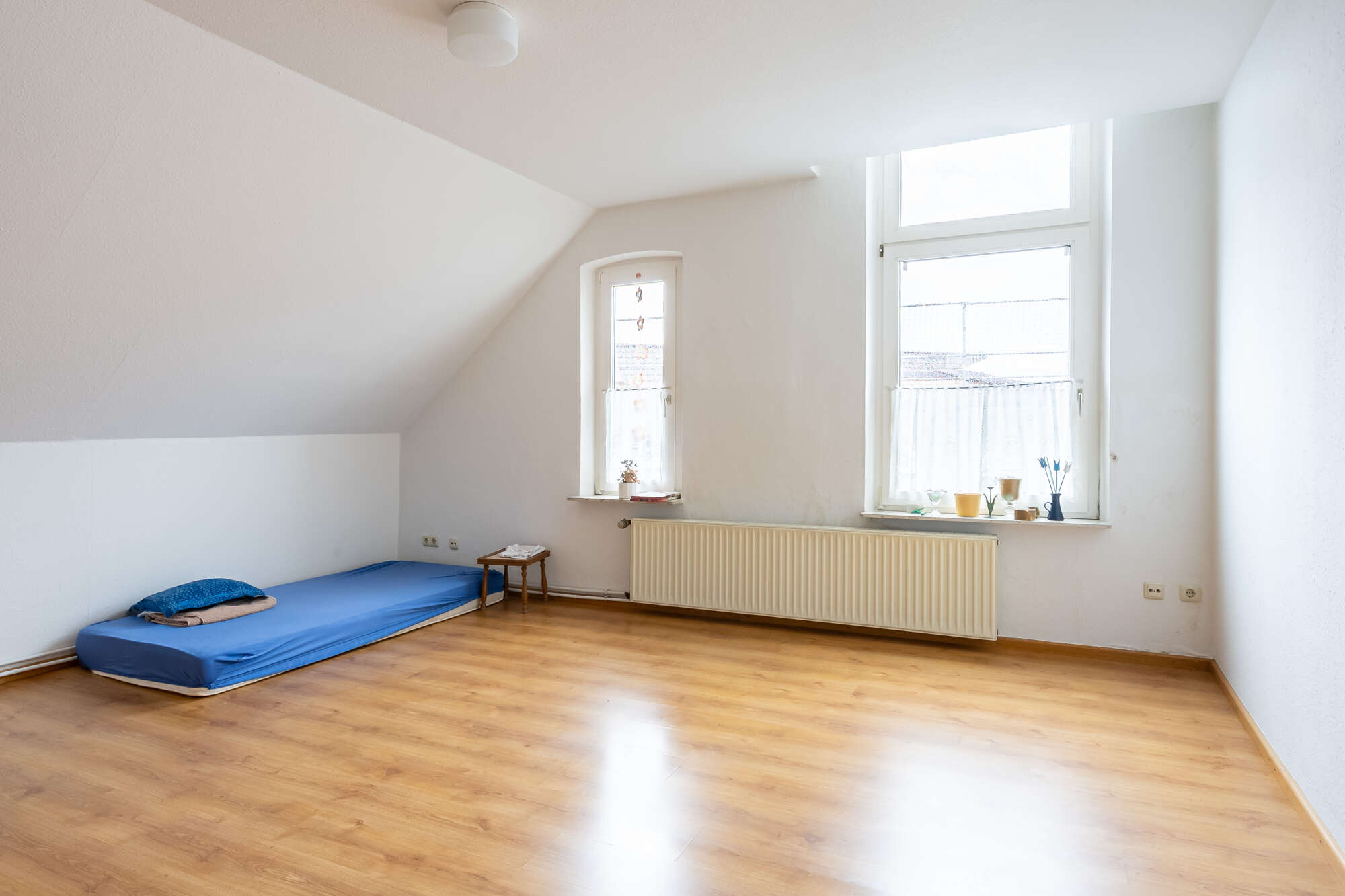 Der Dachboden kann zusätzlich genutzt werden und bietet weiteres Abstellpotenzial.