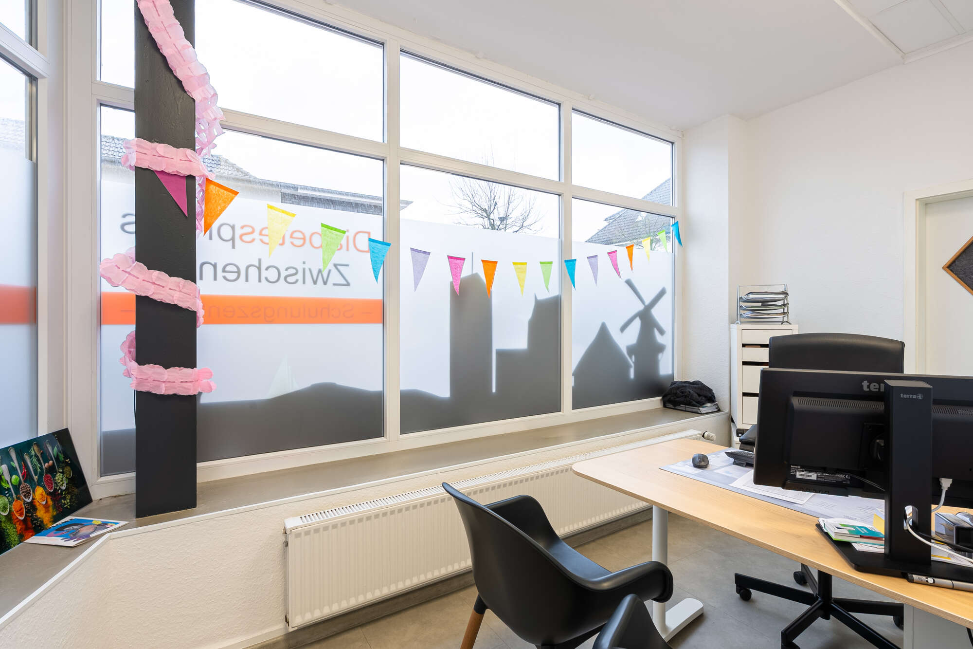Im Erdgeschoss befindet sich eine vermietete Gewerbeeinheit mit einer Fläche von ca. 67 m². Diese umfasst einen einladenden Empfangsbereich, einen Besprechungsraum sowie einen Büroraum.