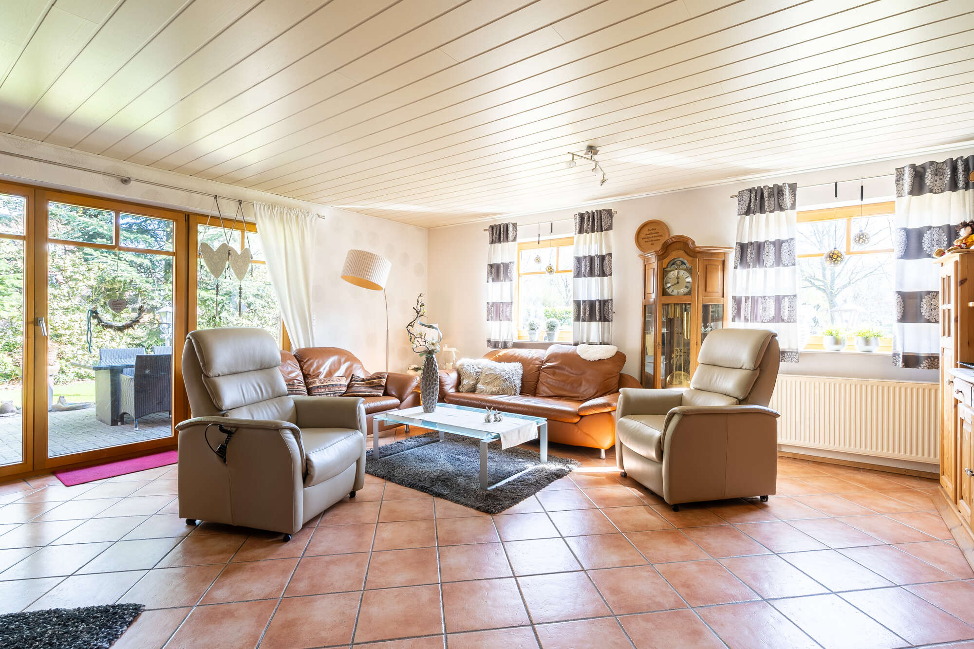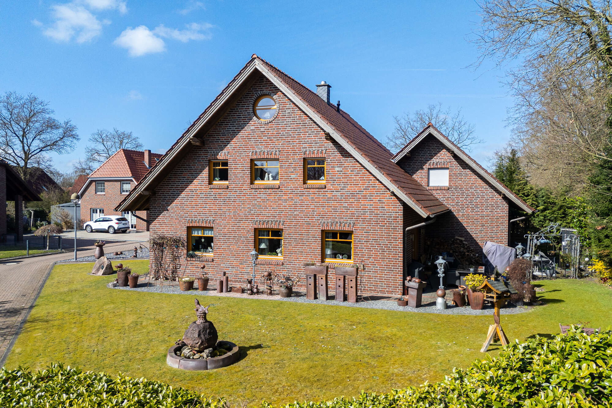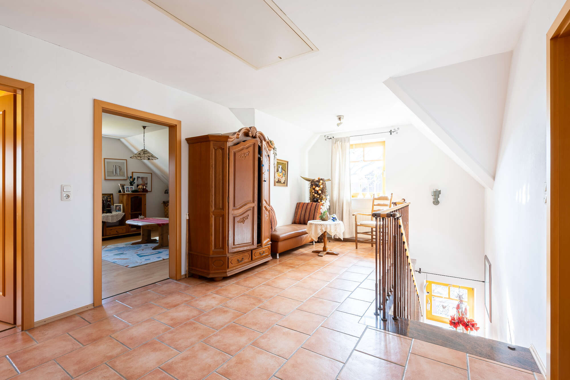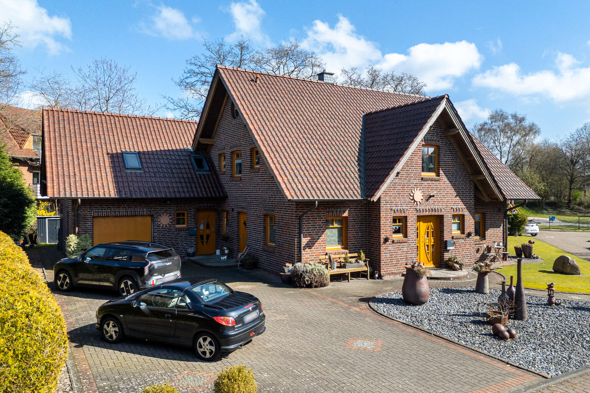 Bereits die breite Hofeinfahrt sowie der gepflegte Garten vermitteln einen einladenden ersten Eindruck. Das Haupthaus überzeugt mit einer Wohnfläche von ca. 177 m² durch eine durchdachte Raumaufteilung und ein angenehmes Wohnambiente.