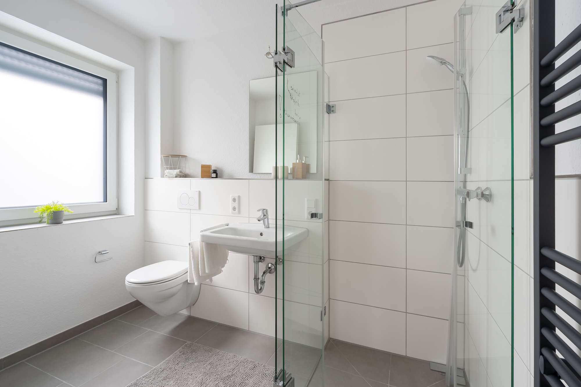 - Fußbodenheizung in allen Räumen und Handtuchheizkörper im Bad