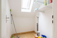 Im Schlafzimmer ist genügend Platz für ein Bett und einen Kleiderschrank. Ein kleineres zusätzliches Zimmer dient als Arbeits- oder Gästezimmer. Im HWR befindet sich der Anschluss für die Waschmaschine. Putzmittel etc. können hier ebenfalls gelagert werden. Das Tageslichtbad ist mit einer Duschwanne ausgestattet. Die Heizungsanlage für die Wohnung befindet sich separat in einem kleinen Abstellraum.